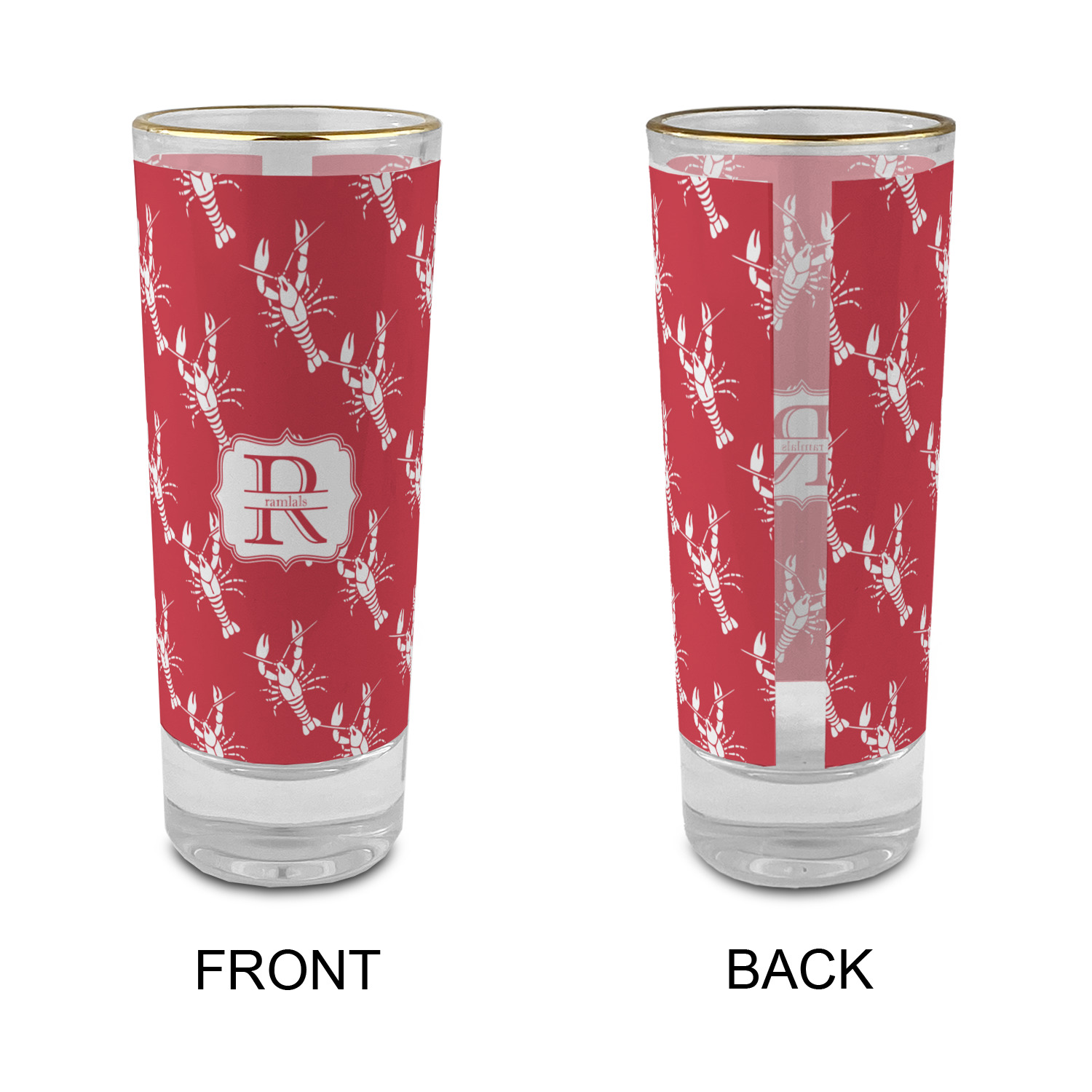 These glass shooter glasses are printed in full color with the design of your choice. These are a tall shooter 2 oz size and stand 4" tall. The print is a full wrap design to boldly display your personalization.