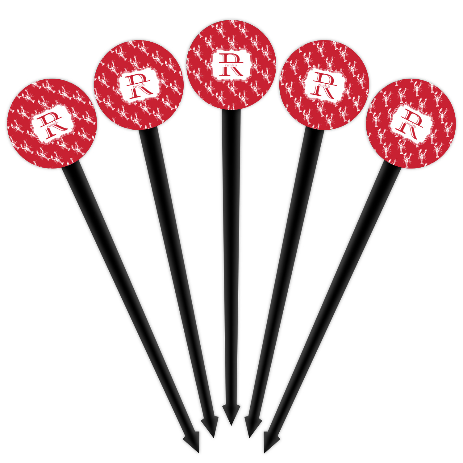 Coastal / Beach Style Designs for 4" Round Plastic Food Picks - Black - Single-Sided