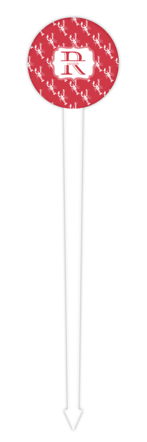 The design is done is a red background with white crawfish, while the personalization is inside a beautiful decorative rectangular frame. The personalization style is an initial along with the name.