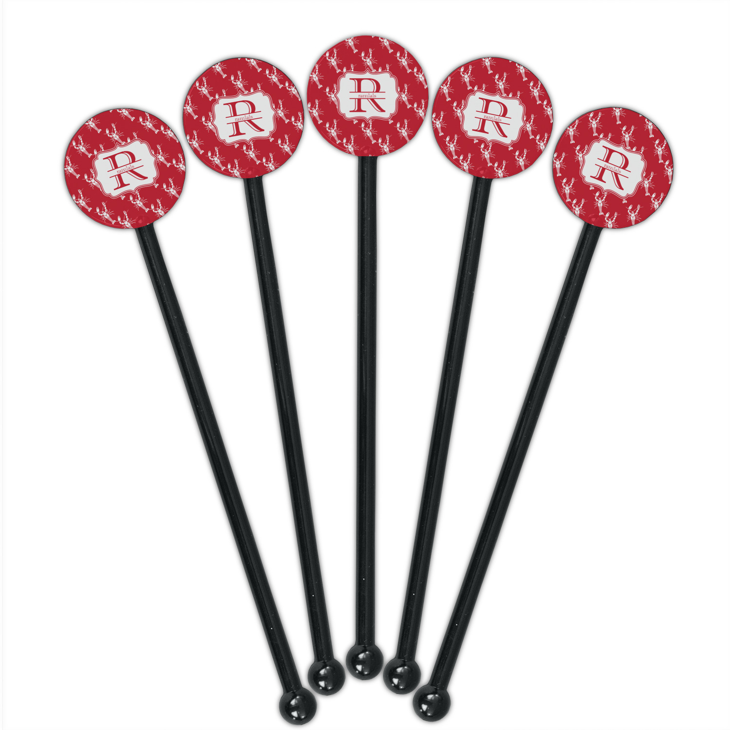 Coastal / Beach Style Designs for 5.5" Round Plastic Stir Sticks - Black - Single-Sided