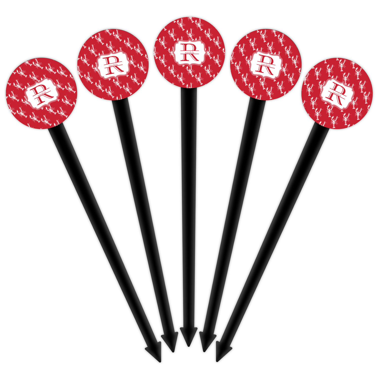 Coastal / Beach Style Designs for 6" Round Plastic Food Picks - Black - Double-Sided
