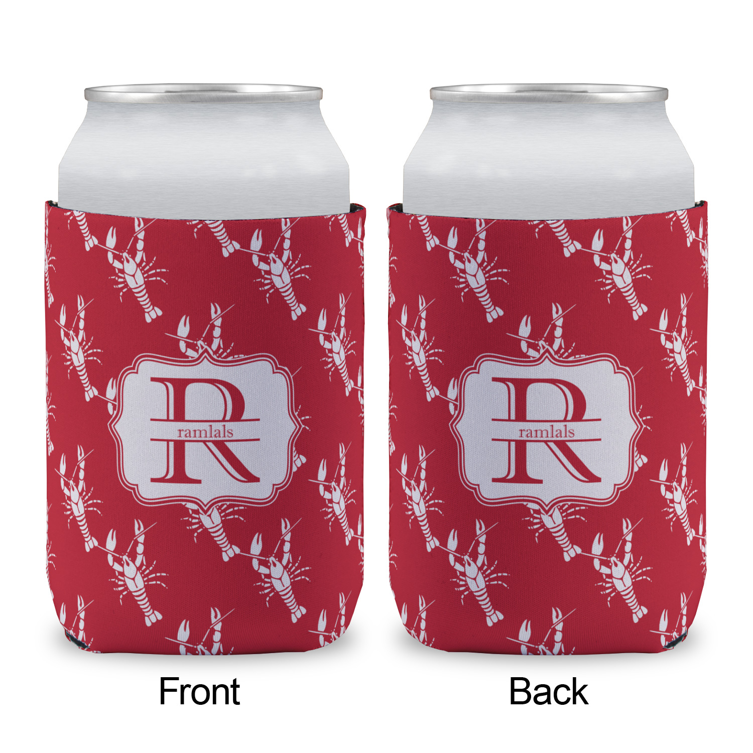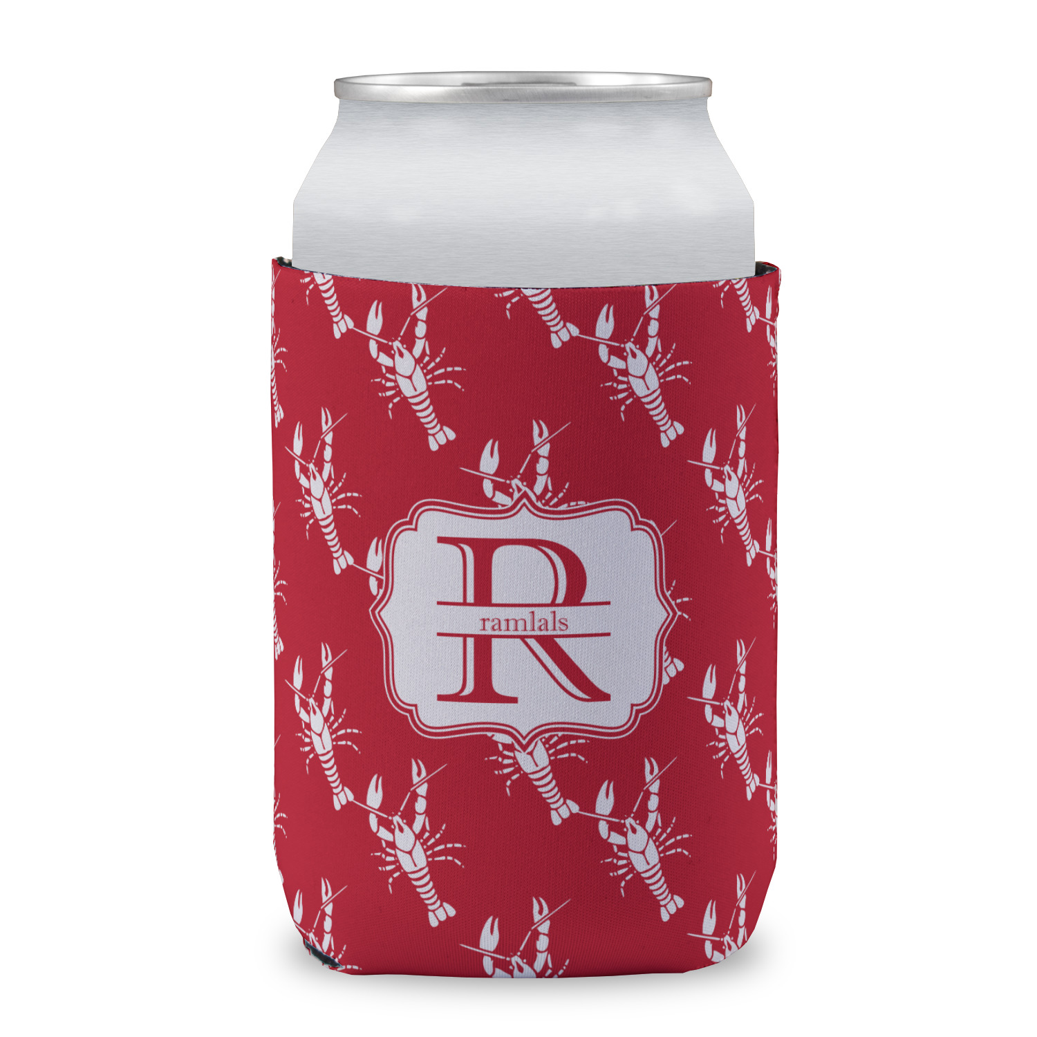 The design is done is a red background with white crawfish, while the personalization is inside a beautiful decorative rectangular frame. The personalization style is an initial along with the name.