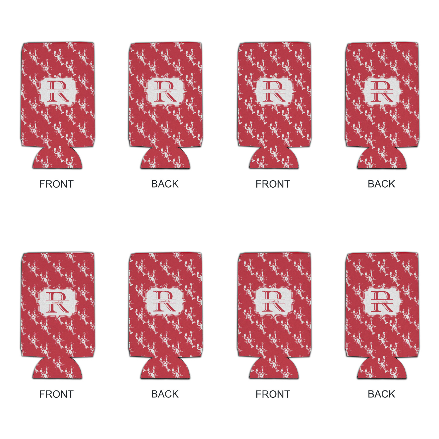 The design is done is a red background with white crawfish, while the personalization is inside a beautiful decorative rectangular frame. The personalization style is an initial along with the name.