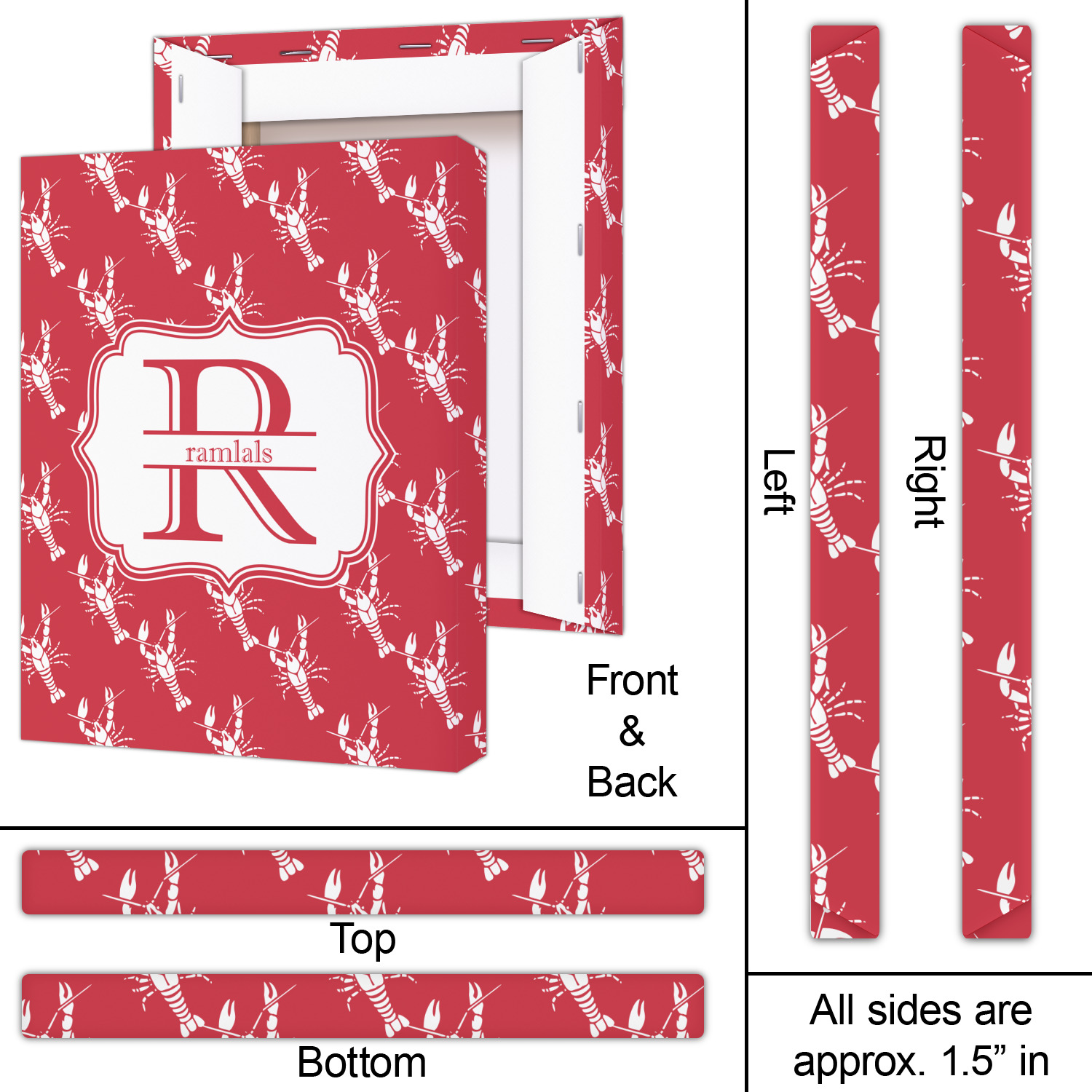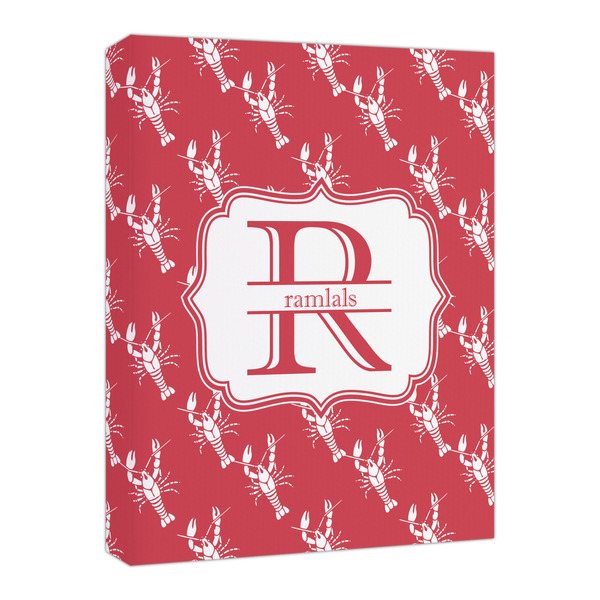 The design is done is a red background with white crawfish, while the personalization is inside a beautiful decorative rectangular frame. The personalization style is an initial along with the name.