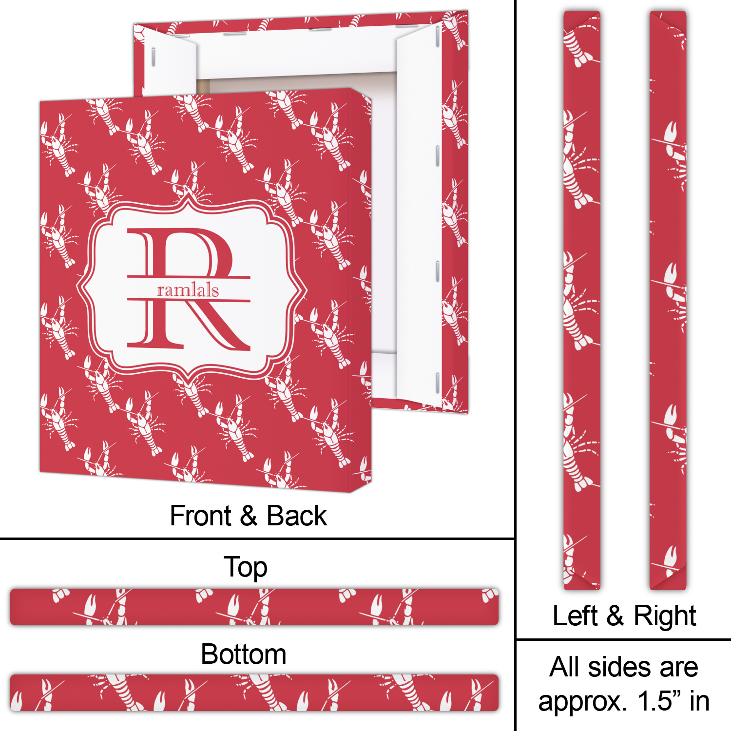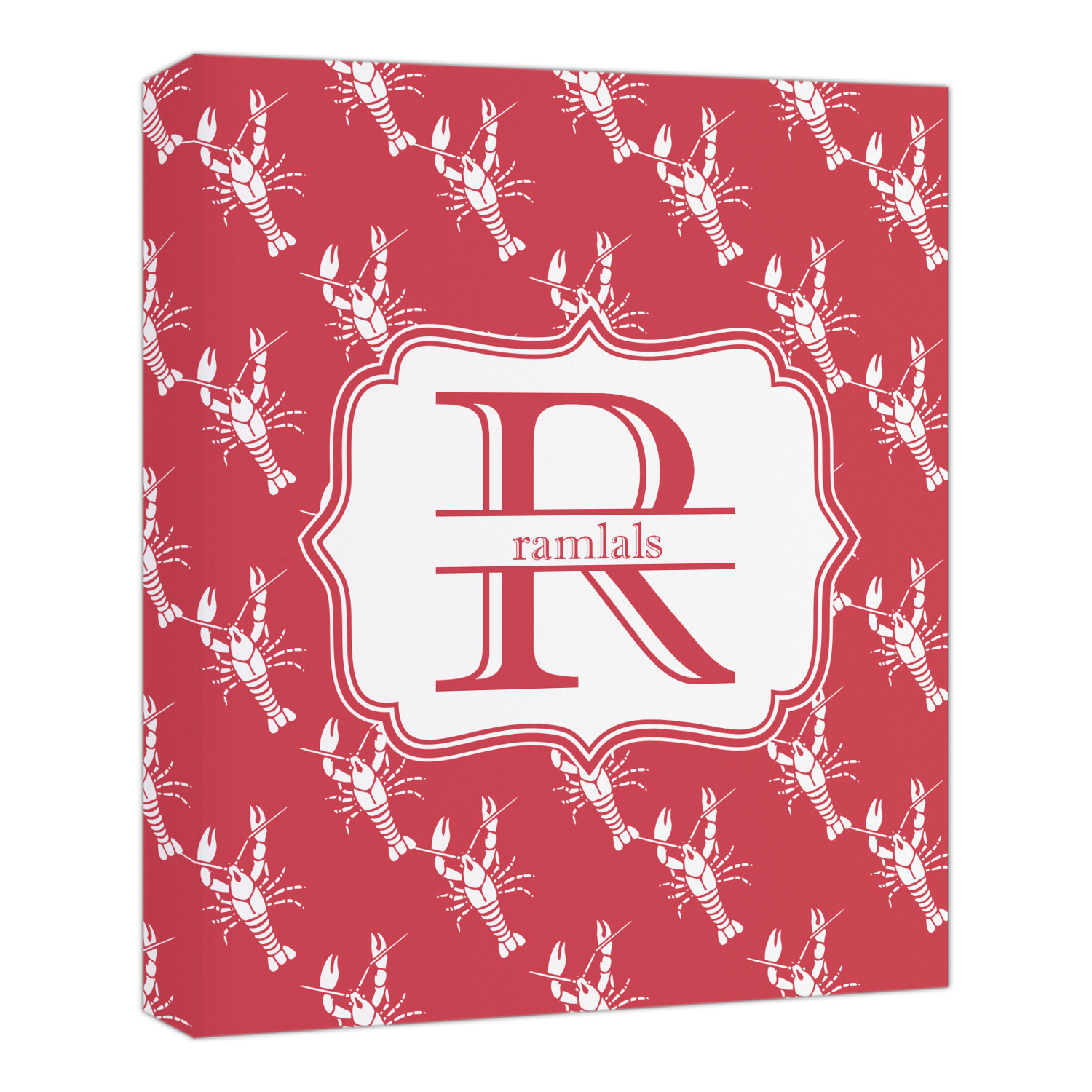 The design is done is a red background with white crawfish, while the personalization is inside a beautiful decorative rectangular frame. The personalization style is an initial along with the name.