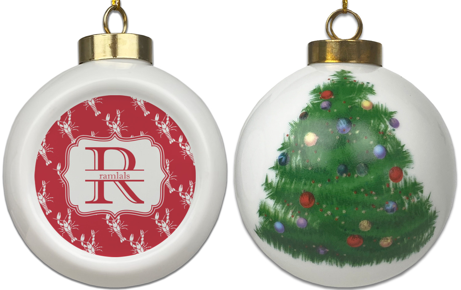 Our Christmas ornaments are a unique ceramic ball shape with a twist as it has a flat face to display your custom design! Select from one of our two design types - Christmas Tree or Poinsettia Garland - to adorn the curved back of your personal design. Each ornament measures 3H x 2.5W x 2D accompanied with a gold string accent for finishing touches to hang on your beautiful Christmas tree!