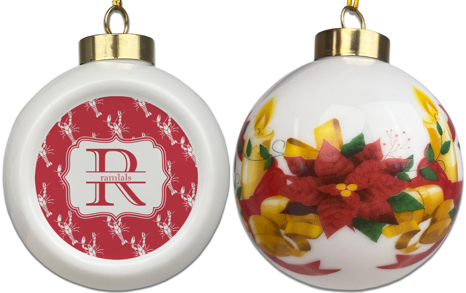 Our Christmas ornaments are a unique ceramic ball shape with a twist as it has a flat face to display your custom design! Select from one of our two design types - Christmas Tree or Poinsettia Garland - to adorn the curved back of your personal design. Each ornament measures 3H x 2.5W x 2D accompanied with a gold string accent for finishing touches to hang on your beautiful Christmas tree!