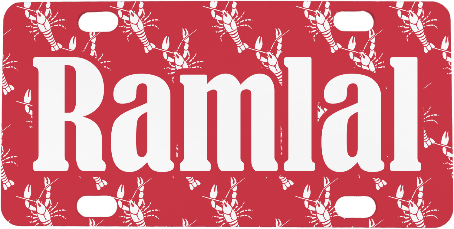 The design is done is a red background with white crawfish, while the personalization is inside a beautiful decorative rectangular frame. The personalization style is an initial along with the name.