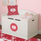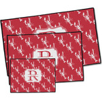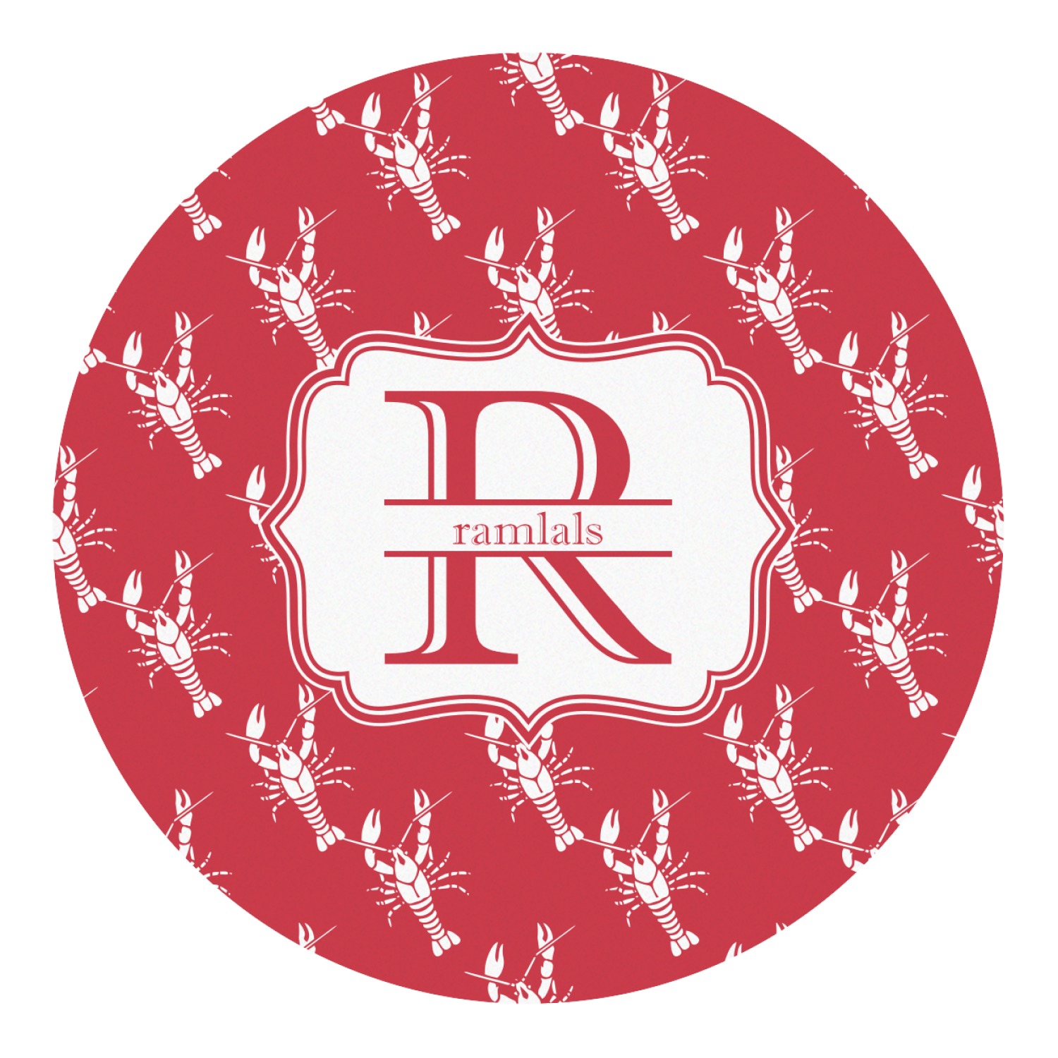 The design is done is a red background with white crawfish, while the personalization is inside a beautiful decorative rectangular frame. The personalization style is an initial along with the name.