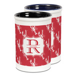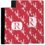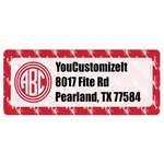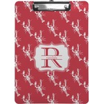 The design is done is a red background with white crawfish, while the personalization is inside a beautiful decorative rectangular frame. The personalization style is an initial along with the name.