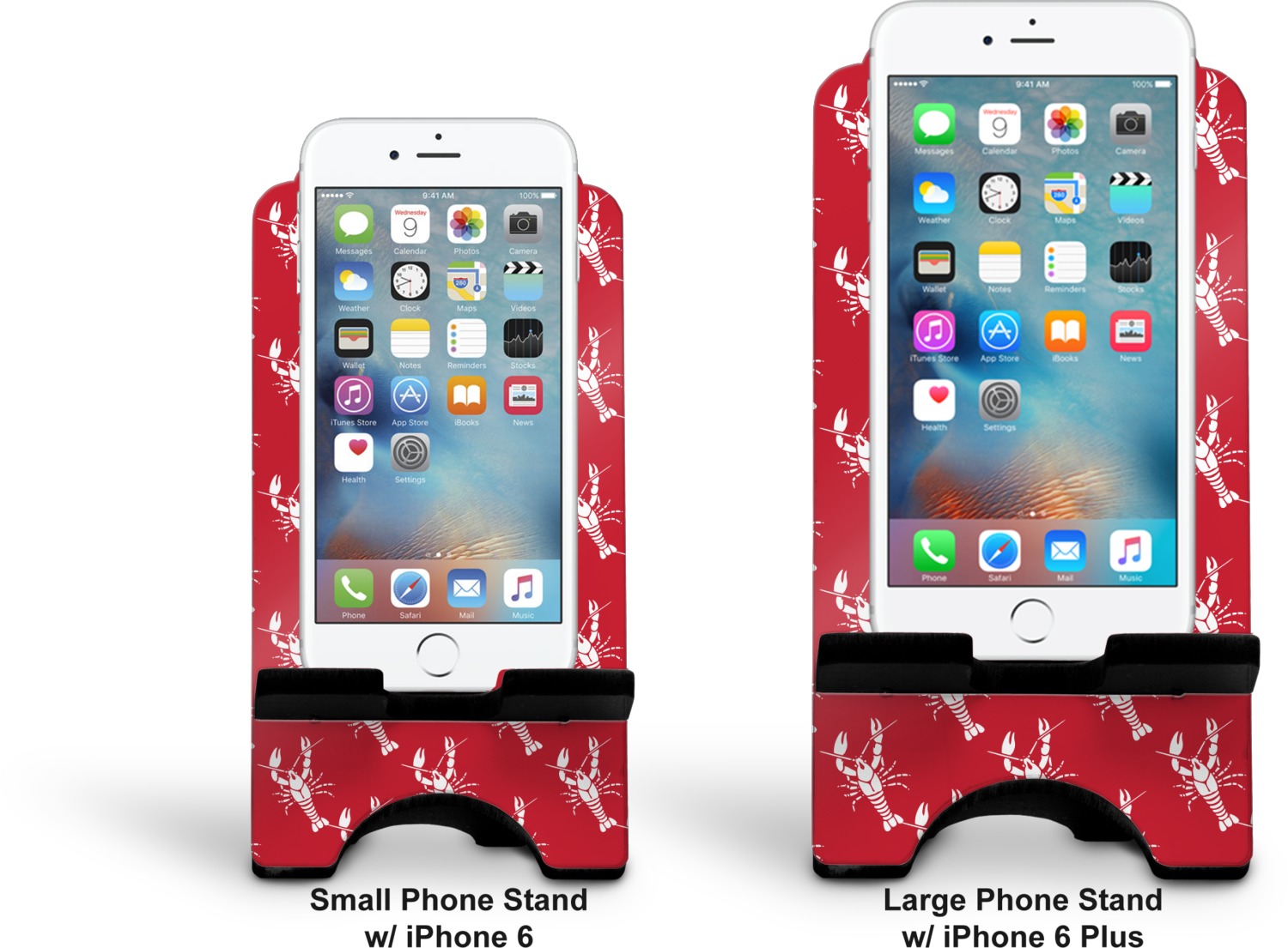 To meet your needs, we offer four variations of this IPhone stand. The backboard of the first version is shaped as a plain, yet sleek rectangle, and is available in two sizes. Our smaller size is approximately 4 by 3.25 by 7 inches, while the larger model is 4 by 3.77 by 8.5 inches. Alongside this model, we also provide you with a more decorative option. The upper part of our second version features a curved edge, for a classy, suave appearance. This phone holder is also sold in two sizes: a smaller version, which is 4 by 3.25 by 7 inches, and our larger model, which is 4 by 3.77 by 8.5 inches. Both models will support large phones, but the larger model is better if you wish to proudly display your personalized design.