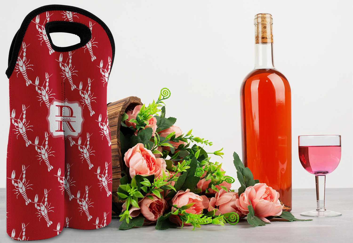 These tote bags are insulated to keep the bottles cold and have a stitched separation down the middle and double handles to keep the two bottles safe and secure during travels.