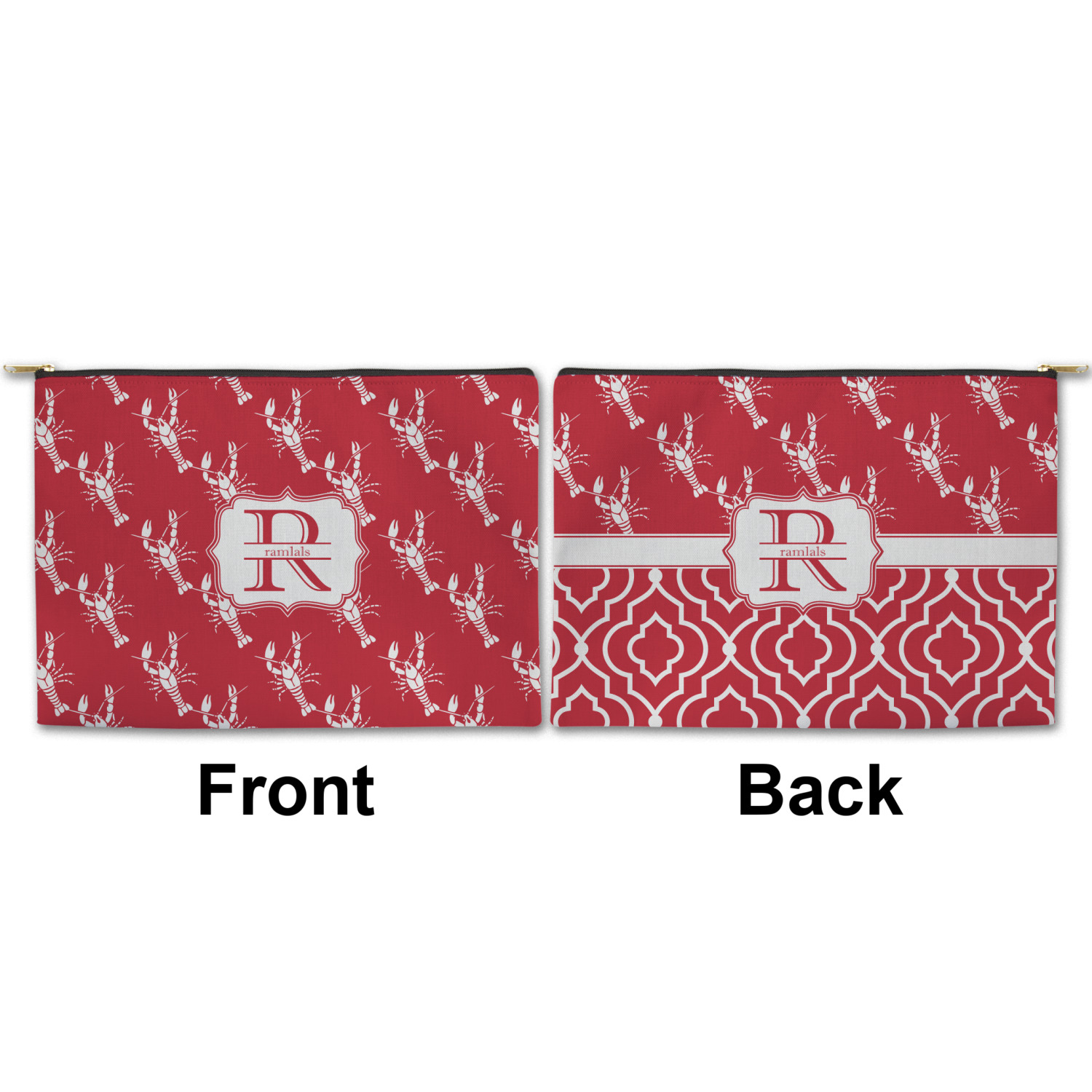 You can design both the front and the back of the pouch - same design, two complementary designs or two totally different designs - the choice is yours! We offer many different personalization styles i.e. name, name & initial, monograms - so the choice to personalize is also yours.