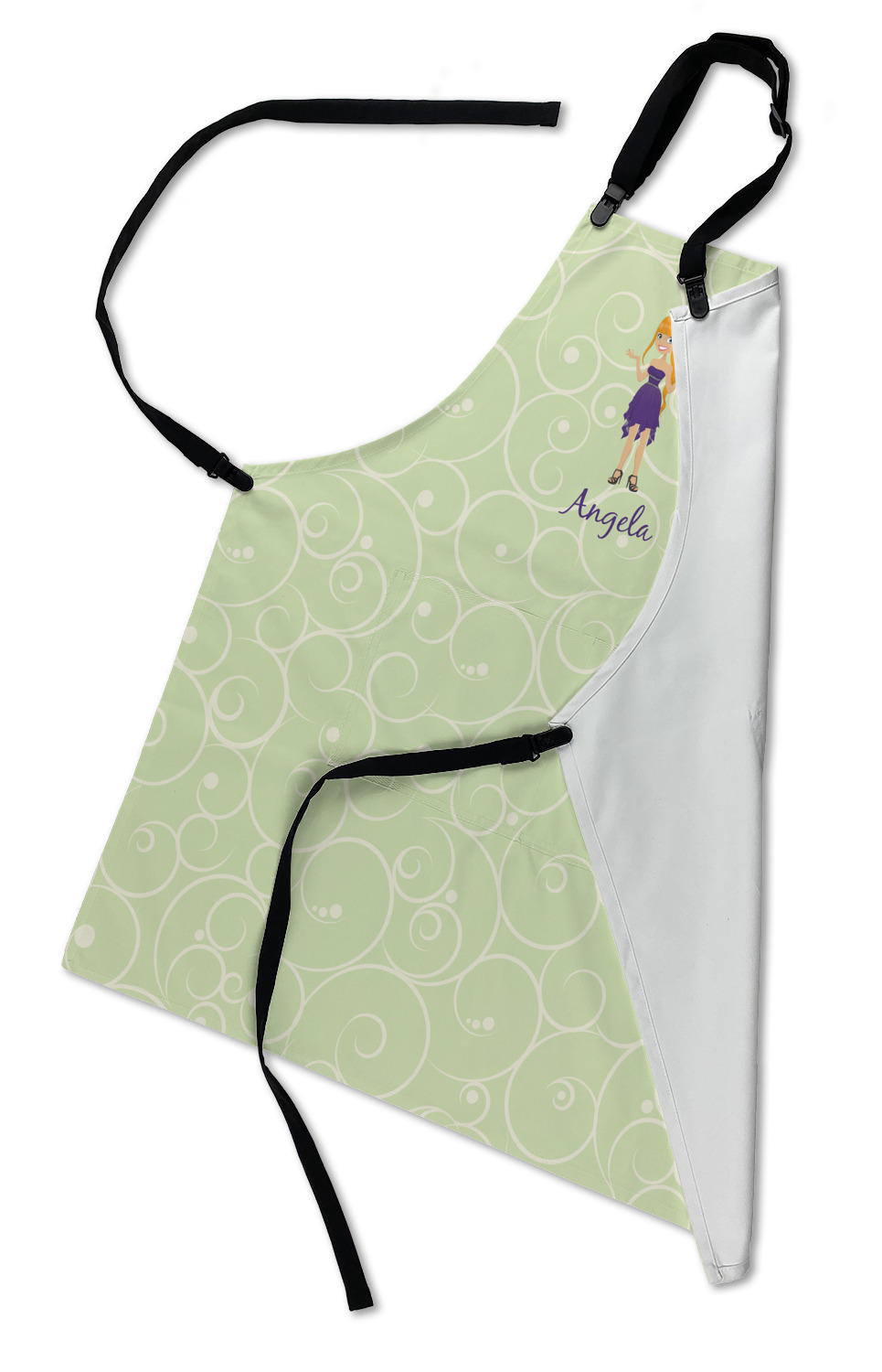 Our aprons are a lightweight yet durable polyester material. We offer two styles of aprons, one without pockets and one with two pockets adorning the center near the waistline. Each apron is one size* and comes with adjustable straps for both the neckline and waist. We print your custom design on the front of the apron to display your creativity!