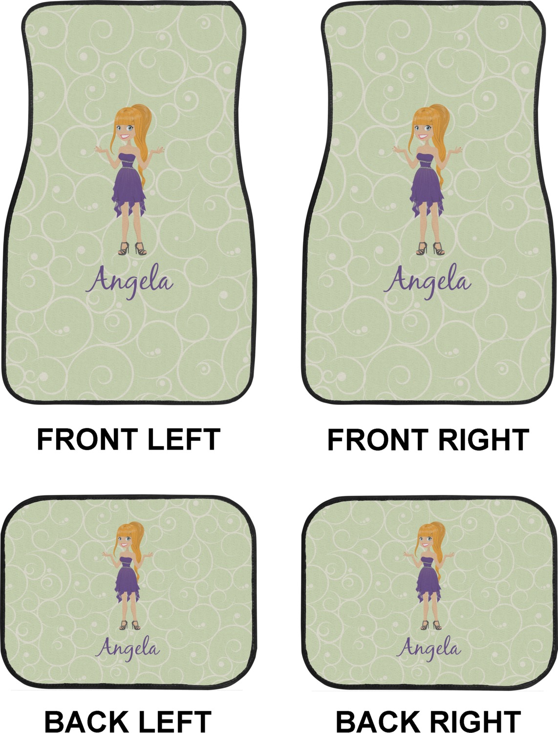 We craft our auto floor mats mats from polyester, apply a black finish to the edges, and lined at the bottom to prevent slippage. These mats protect your floors from grass, mud, and any accidental spills. We display your personalized design on the front face of each mat. The sizes of these car floor liners are standardized to provide a versatile fit for all vehicles. The front rows car mats measure at 17 by 26.5 inches, while the back rows measure at 17 by 13 inches. We sell three packages of car floor mats. You can purchase a pair of front row car mats, a pair of back row car mats, or a set of front row and back row car mats. To make an informed purchase, we recommend measuring the surface area of your car floors.