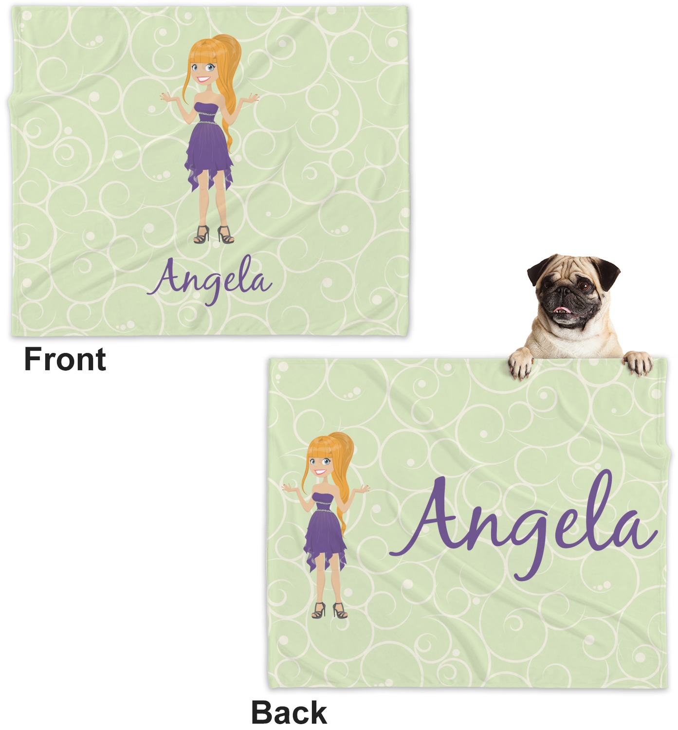 These dog blankets are crafted from a gentle, soft-to-the-touch, minky material. We print your customizations, either matching or differing, on both the top and underside of the blanket. These personalized dog blankets are available in two sizes: regular and large. Our regular size, at 40" x 30", accommodates small and some medium size dogs. At 60" x 50", our large dog blanket is a better fit for bigger breeds. Though specialized for dogs, these blankets still make a thoughtful gift for your favorite feline, or any other pet in mind!