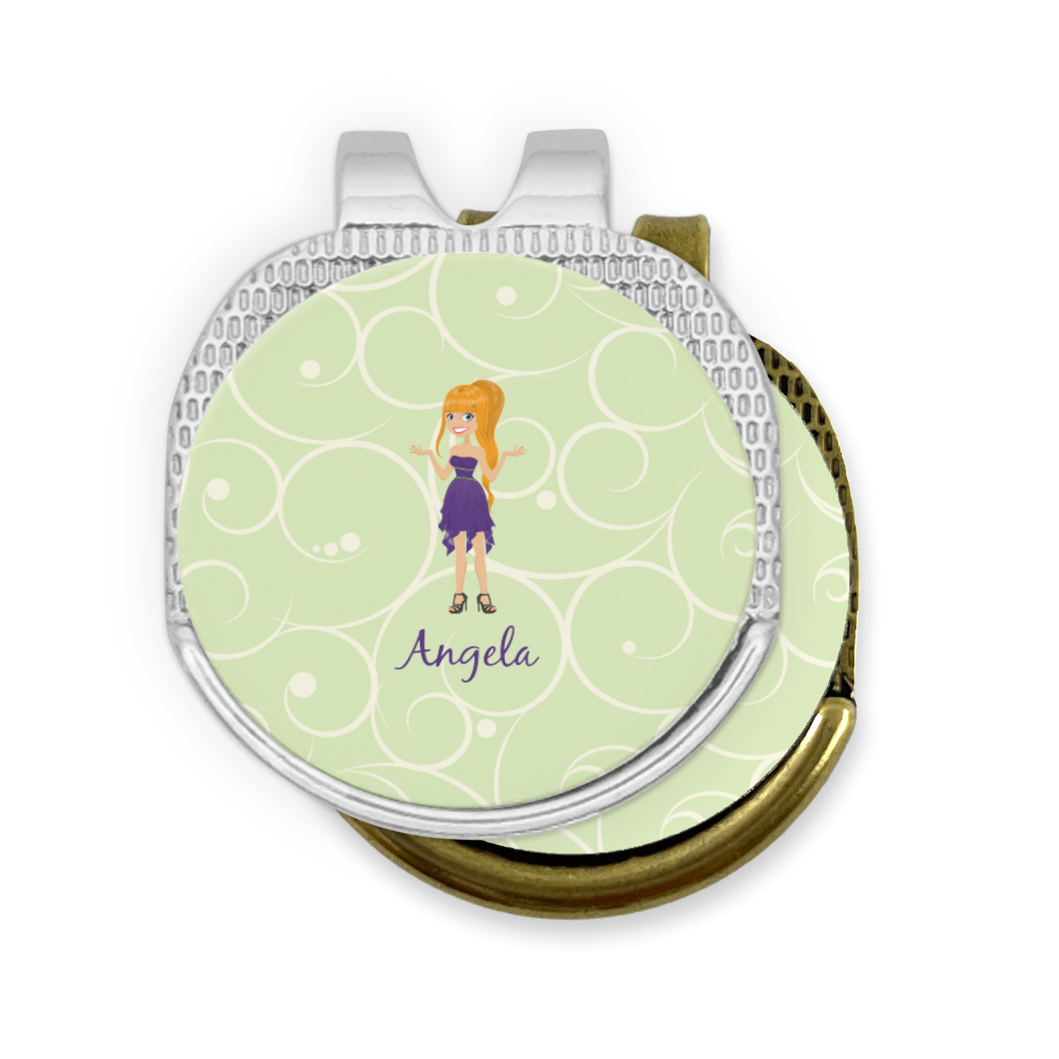 This round shaped little clip is simply 1.25" x 1.5". A clip wraps around to the back of the ball marker holder in order to be able to clip it to the bill of your hat or even your belt. The metal ball marker attaches by a magnet on the clip. Available in stainless steel natural finish or gold finish, you are sure to find one to suit your style. This makes for convenient removal when you need to use it. No more digging in your bag or pockets trying to find it!