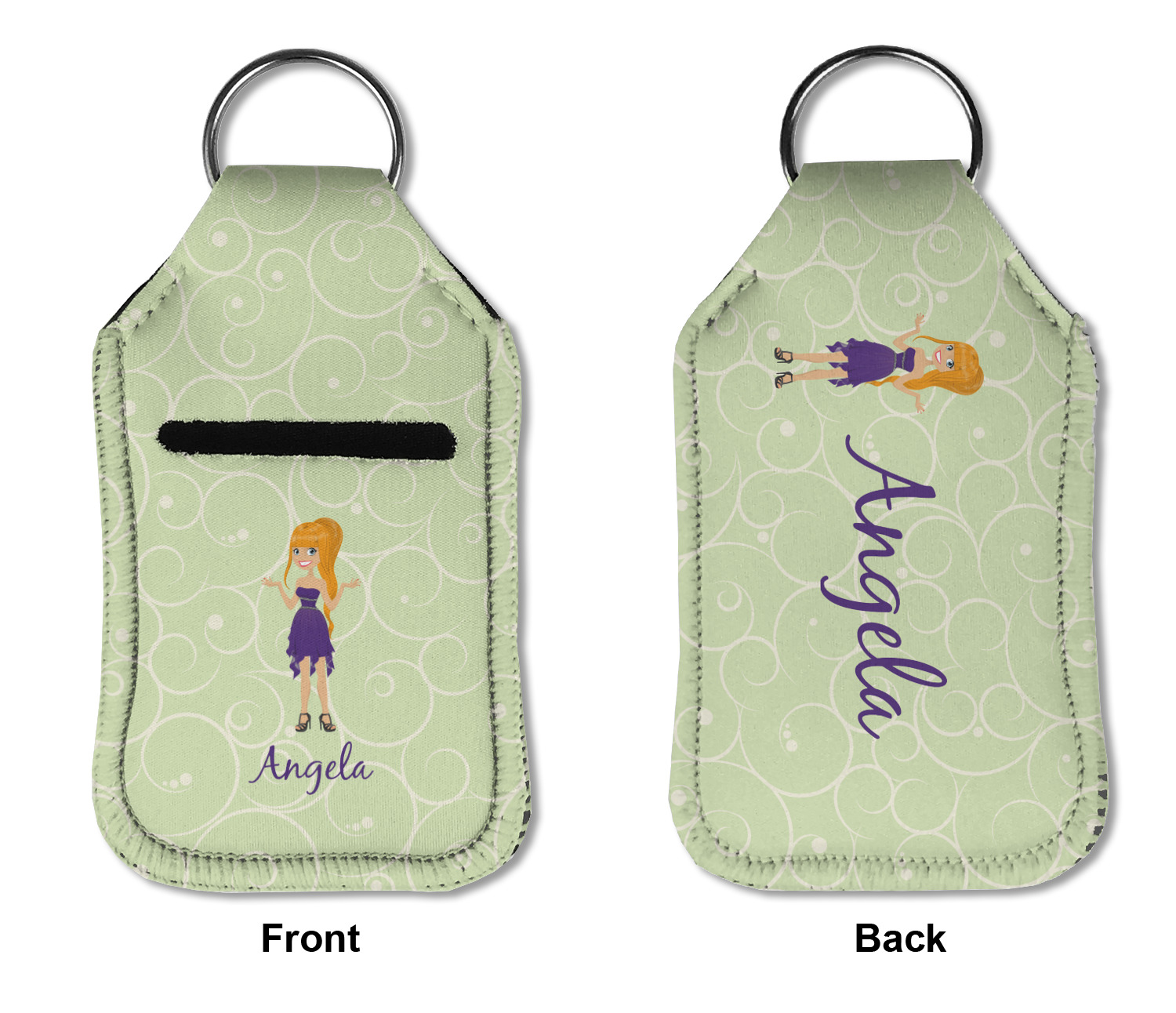 Each hand sanitizer holder comes with its own empty travel-sized, refillable hand sanitizer sure to fit snug in your customized sanitizer case! Our hand sanitizer cases are a durable, yet soft neoprene material sure to last any daily activities or travel agenda. Customize and personalize a hand sanitizer bottle holder with one of our two sizes - small (4.25" x 2.25") or large (5.5" x 2.5"). Each travel sanitizer holder comes with a keyring for attachment on bags, keys, or more!