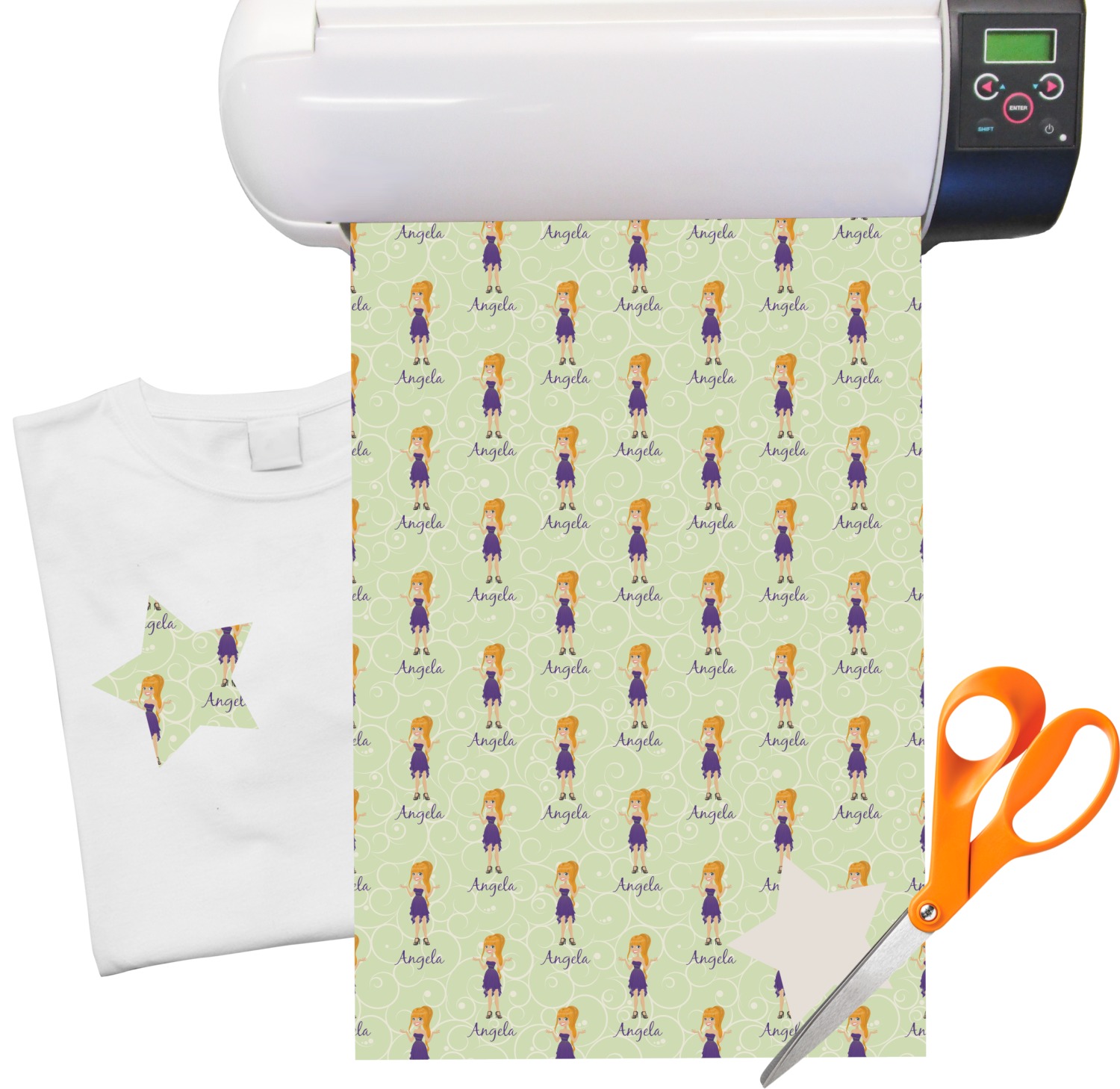 You can cut out your name, a monogram, or any designs with a pair of scissors or with any hobby cutter. You can create thousands of decorations that can be ironed on to anything that is cotton, polyester, or a cotton/poly blend!!