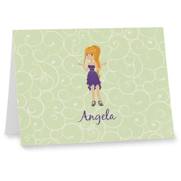 Our custom folded note cards are printed on premium 100lb. card stock and comes with white envelopes. The note card measure 5.5 by 4.25 inches and are blank on the inside for your handwritten message.