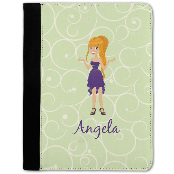 These personalized padfolios are made from a black, polyester microfiber and features a standard, 50-page notepad. However, these black padfolios can accommodate a pad with up to 100 pages. This model also features a slot pocket for any loose sheets of paper, small pockets for business cards, and an elastic band to secure a pen. We print your personalization across the front of this notepad portfolio in bright, vibrant color. These padfolios come in 2 sizes, Medium - approximately 10.25" x 8" for 5" x 8" paper and Large - approximately 12.5" x 8.5" for 8.5" x 11" paper.