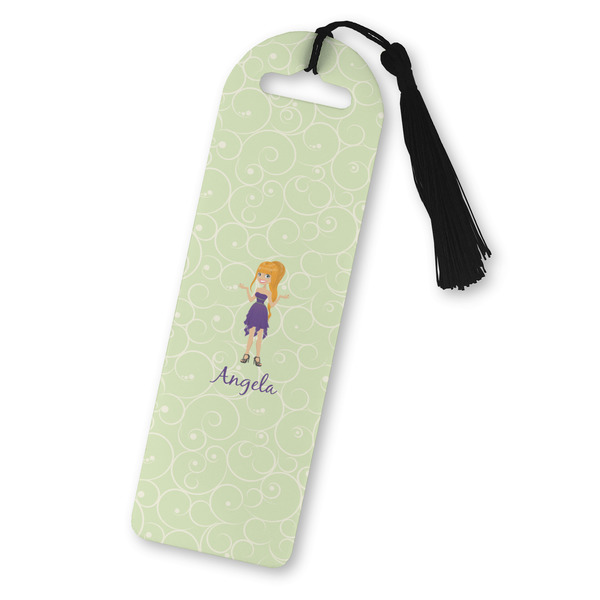Made from a durable, flexible plastic, these bookmarks are printed with your custom design on them. With the tassel on them they make it easy to find your page in your book. These are a rectangular shape 7 1/4 inches tall with a rounded top and are approximately 2 1/4 inches wide.