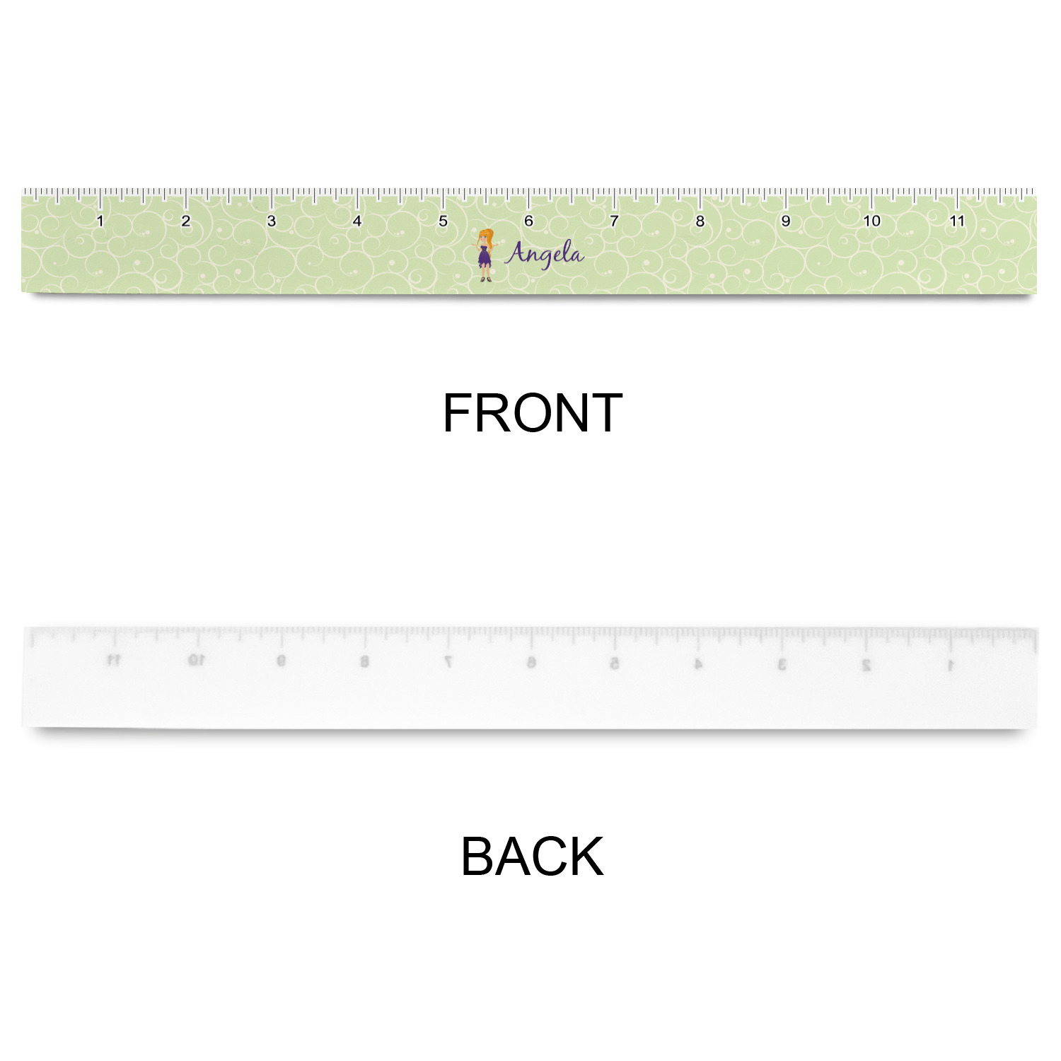 This design was built with a swirls background in a light green and cream color. We chose woman 1 wearing dress 3 and gave her blond hair, light skin, blue eyes, a purple dress and silver shoes. We personalized the design with her name.