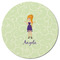 This design was built with a swirls background in a light green and cream color. We chose woman 1 wearing dress 3 and gave her blond hair, light skin, blue eyes, a purple dress and silver shoes. We personalized the design with her name.