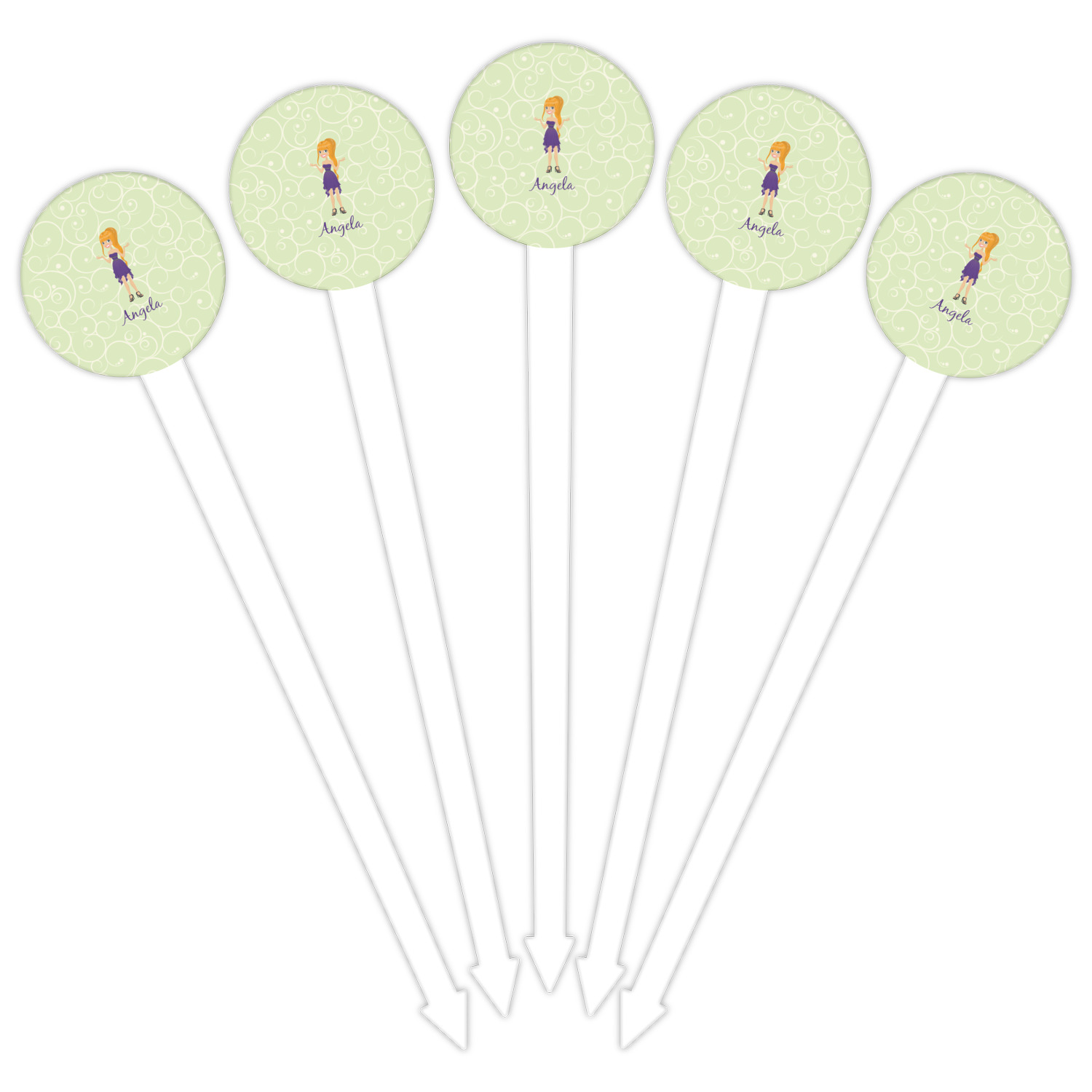 Our plastic cocktail picks have a round disc on top that is printed in full color with your event theme, colors, your logo, your photo, names, initials, monograms etc.
