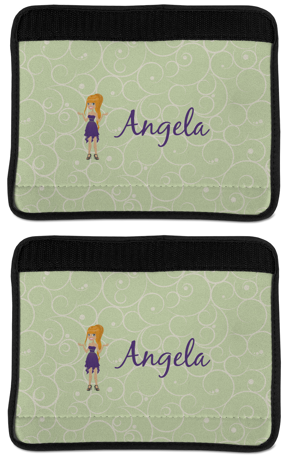 Made from neoprene, our seat belt strap covers wrap around the belt itself and have a Velcro tab for easy attachment and closure. The belt's edges are trimmed with a black polyester for a secure finish. Each cover is 9.5 by 7 inches when open and 9.5 by 2.5 inches when closed. We print your personalized design on the face of the seat belt pad.