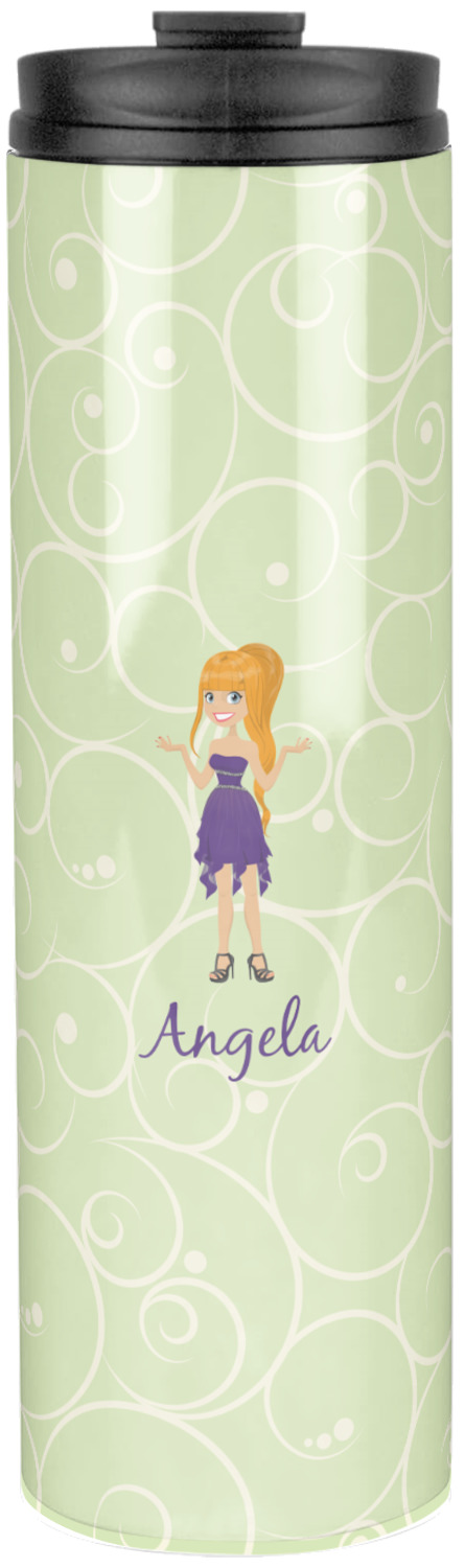 Sip your favorite drink on the go with your own custom stainless steel tumbler! Our slim cylinder shape is perfect for holding your drink in hand, in your purse, or in your backpack! This sleek and modern tumbler is a perfect gift for coffee and tea lovers keeping their drinks just the right temperature throughout the day! We offer two sizes, a 16 oz. or 20 oz., to personalize. Browse and customize or design or create your own with our online design studio!