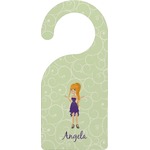 This design was built with a swirls background in a light green and cream color. We chose woman 1 wearing dress 3 and gave her blond hair, light skin, blue eyes, a purple dress and silver shoes. We personalized the design with her name.
