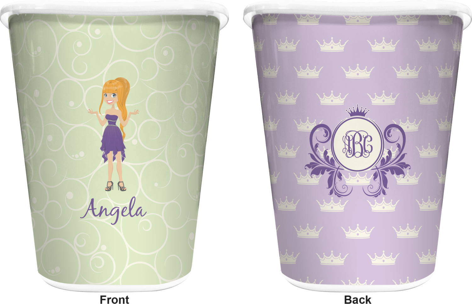 You can choose to purchase these decorative wastebaskets in either a white or a black color that will show on the base and the upper rim. Your customization is printed on a high-gloss, fine-quality vinyl adhesive, and you can choose to either have this adhesive applied to one side only or to both sides. As such, this plastic wastebasket can be single-sided or double-sided, depending on your creative vision. Your customization is printed using durable inks, making the design waterproof and resistant to fading over time.