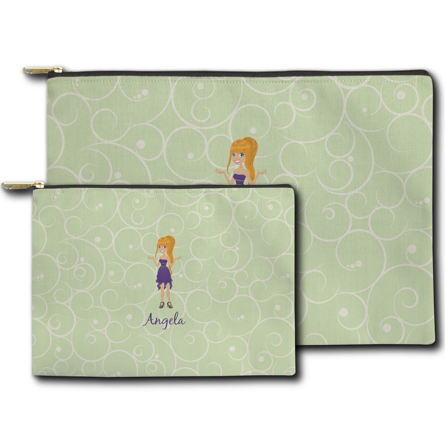 You can design both the front and the back of the pouch - same design, two complementary designs or two totally different designs - the choice is yours! We offer many different personalization styles i.e. name, name & initial, monograms - so the choice to personalize is also yours.