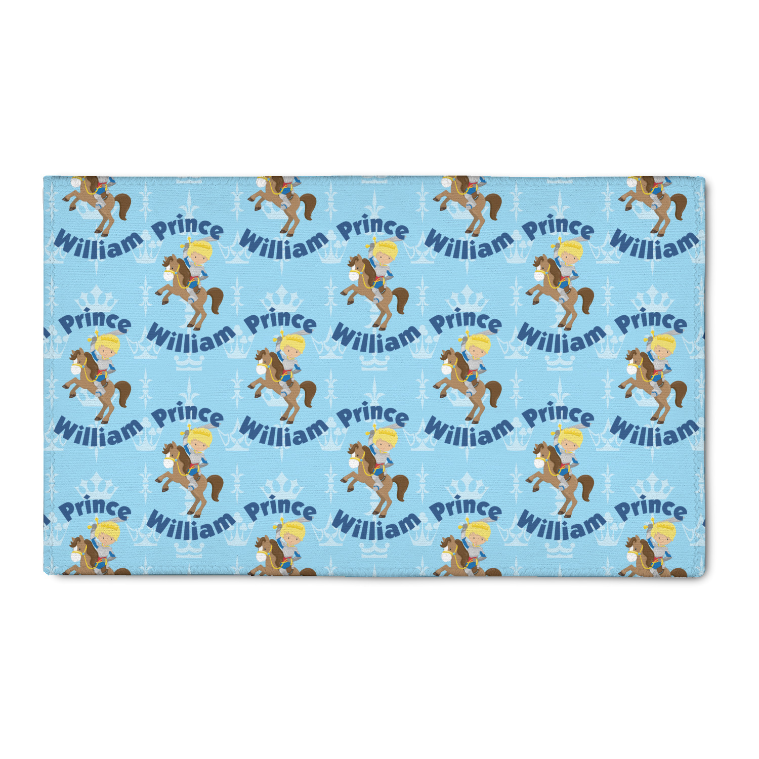 This is the perfect custom / personalized prince design for any young boy. We have created a layered pattern, where the first background is a simple tone on tone crowns pattern. We then layered it with our curved custom text and graphic, where we used "Prince" and "William" as the text and we used a graphic of a prince on horse.