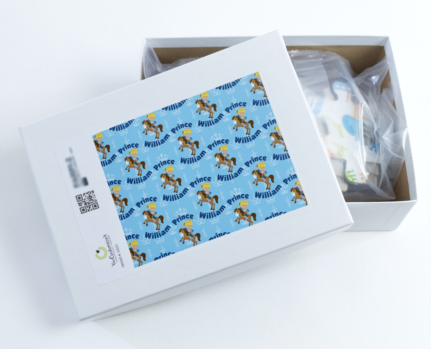 We chose light blue color for the background. We used the personalization of Prince William. We chose the graphic of a Prince riding a horse; the prince's hair and skin color can be customized; our Prince has blonde hair and fair skin.