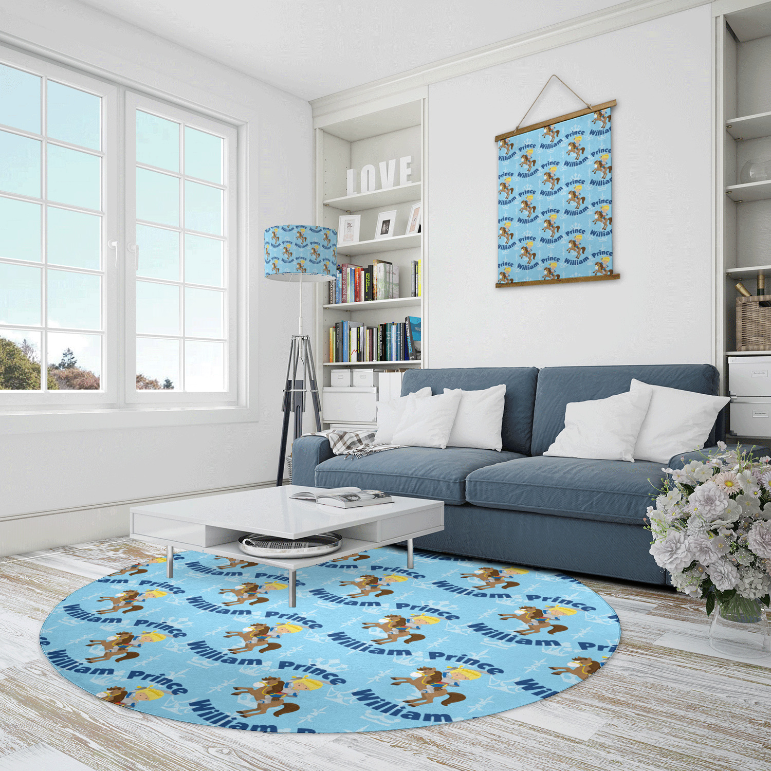 This is the perfect custom / personalized prince design for any young boy. We have created a layered pattern, where the first background is a simple tone on tone crowns pattern. We then layered it with our curved custom text and graphic, where we used "Prince" and "William" as the text and we used a graphic of a prince on horse.