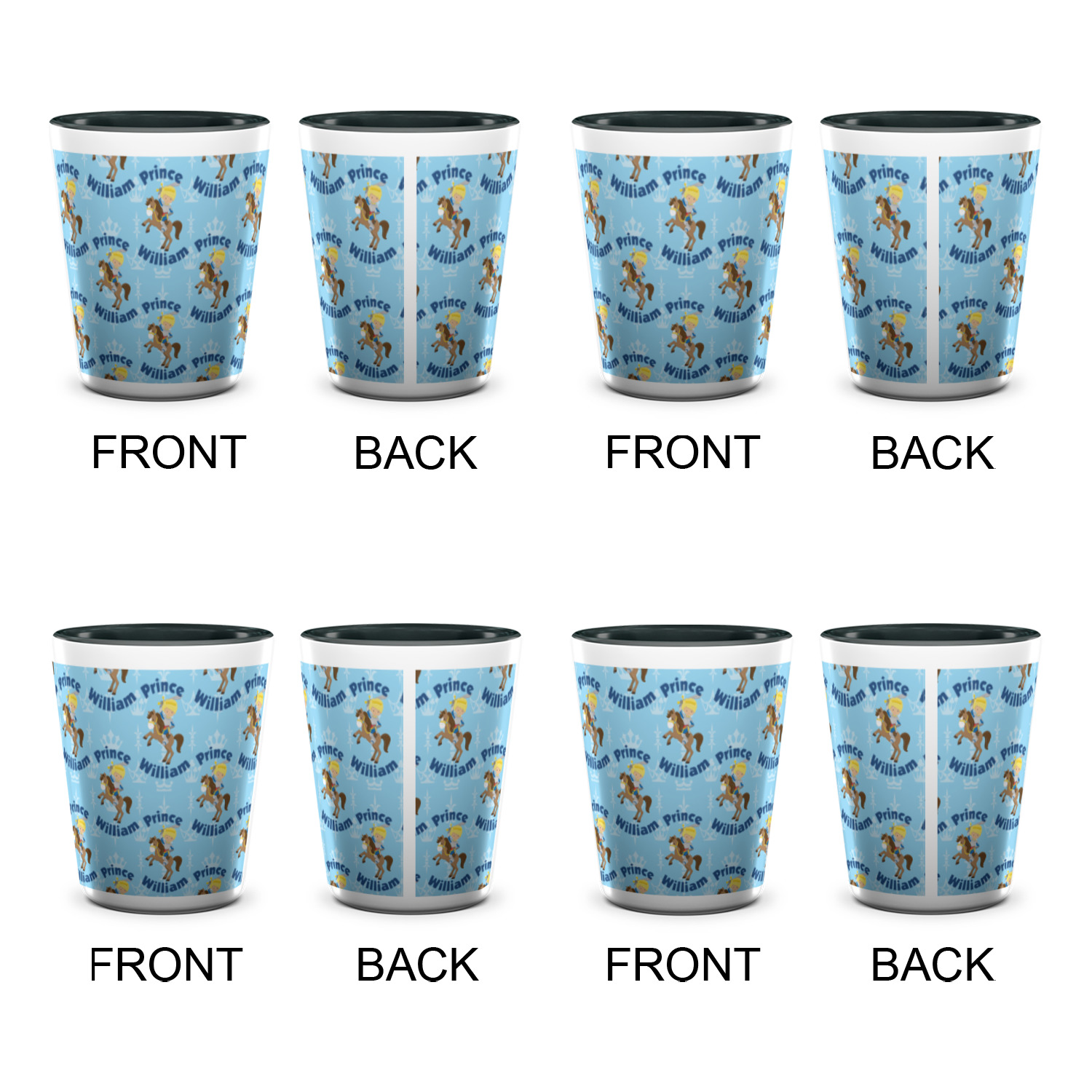This is the perfect custom / personalized prince design for any young boy. We have created a layered pattern, where the first background is a simple tone on tone crowns pattern. We then layered it with our curved custom text and graphic, where we used "Prince" and "William" as the text and we used a graphic of a prince on horse.