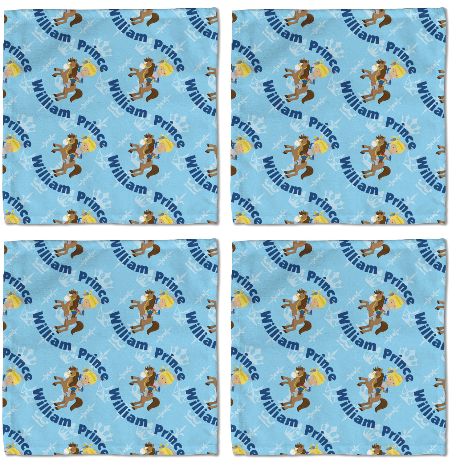This is the perfect custom / personalized prince design for any young boy. We have created a layered pattern, where the first background is a simple tone on tone crowns pattern. We then layered it with our curved custom text and graphic, where we used "Prince" and "William" as the text and we used a graphic of a prince on horse.