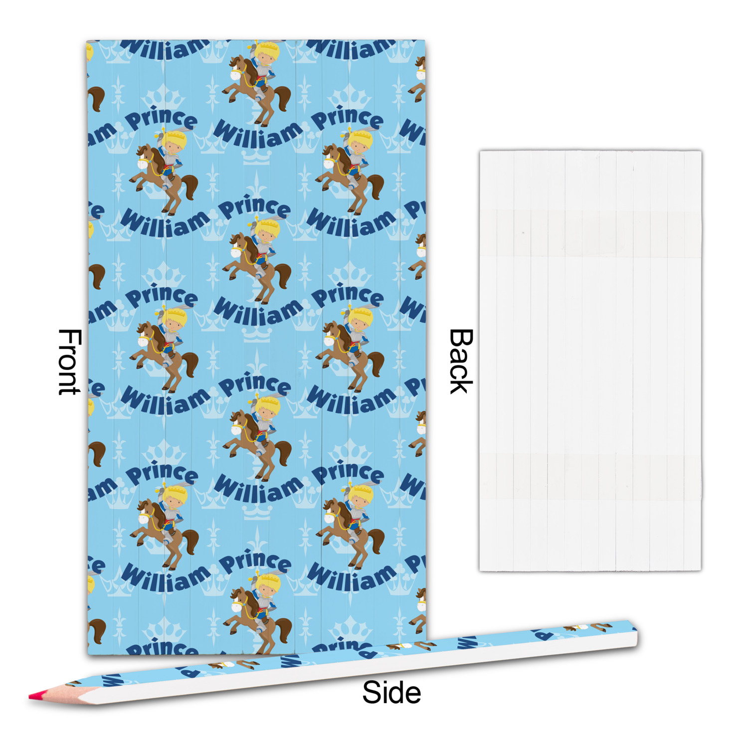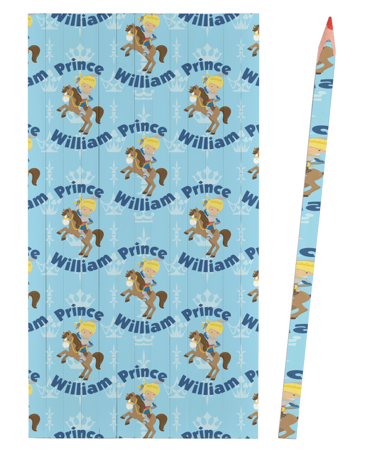 This is the perfect custom / personalized prince design for any young boy. We have created a layered pattern, where the first background is a simple tone on tone crowns pattern. We then layered it with our curved custom text and graphic, where we used "Prince" and "William" as the text and we used a graphic of a prince on horse.
