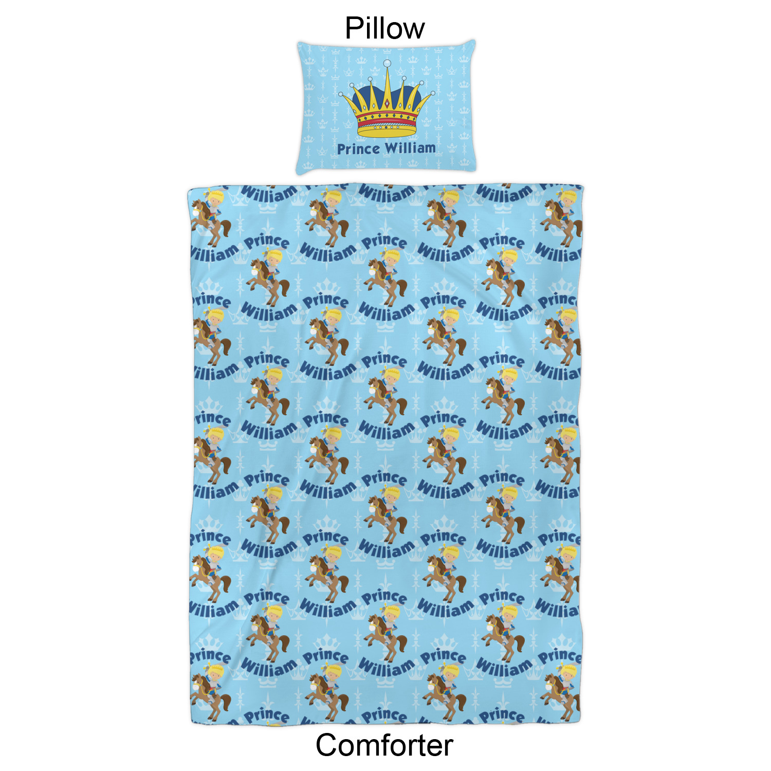 This is the perfect custom / personalized prince design for any young boy. We have created a layered pattern, where the first background is a simple tone on tone crowns pattern. We then layered it with our curved custom text and graphic, where we used "Prince" and "William" as the text and we used a graphic of a prince on horse.