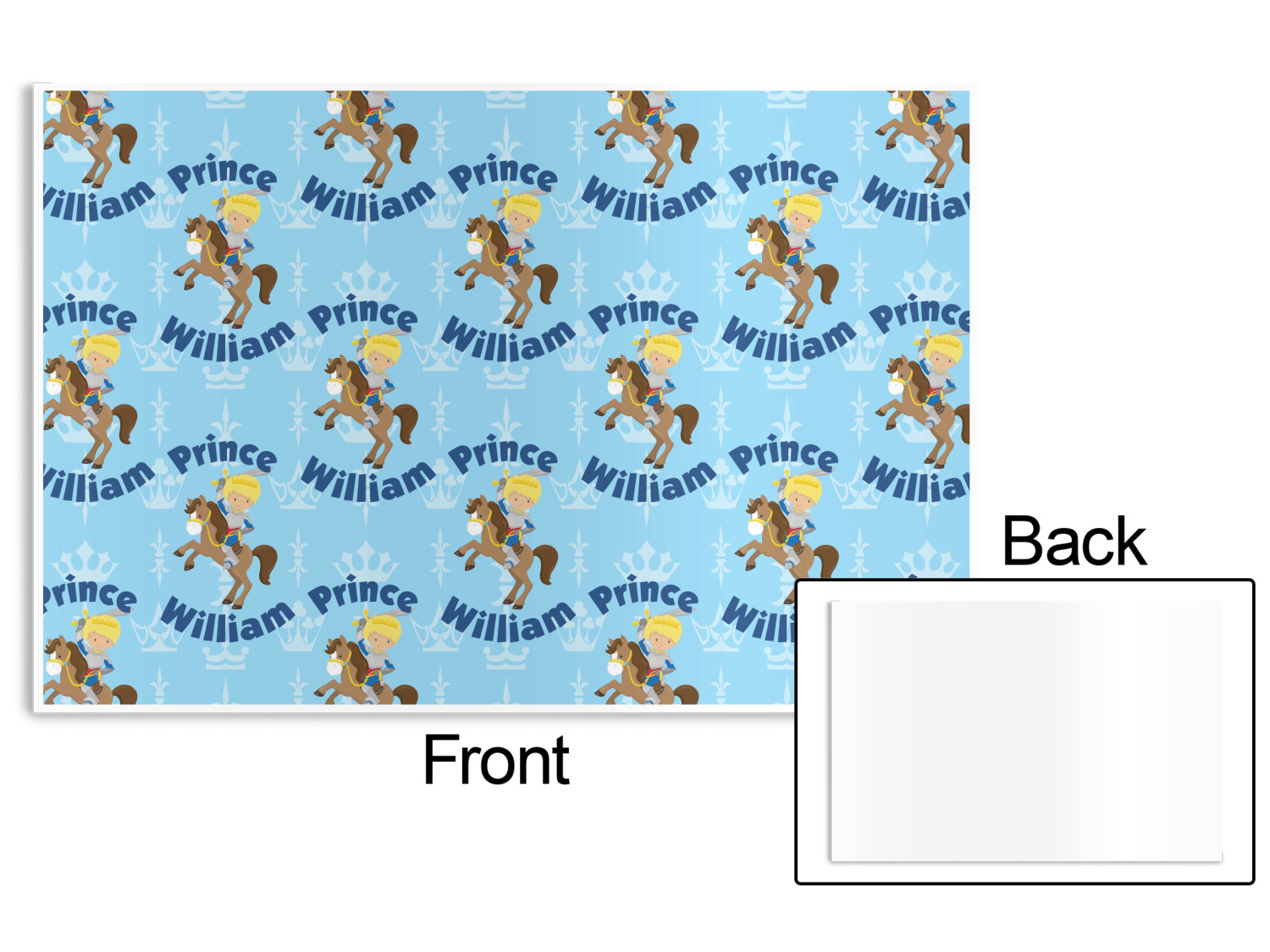This is the perfect custom / personalized prince design for any young boy. We have created a layered pattern, where the first background is a simple tone on tone crowns pattern. We then layered it with our curved custom text and graphic, where we used "Prince" and "William" as the text and we used a graphic of a prince on horse.