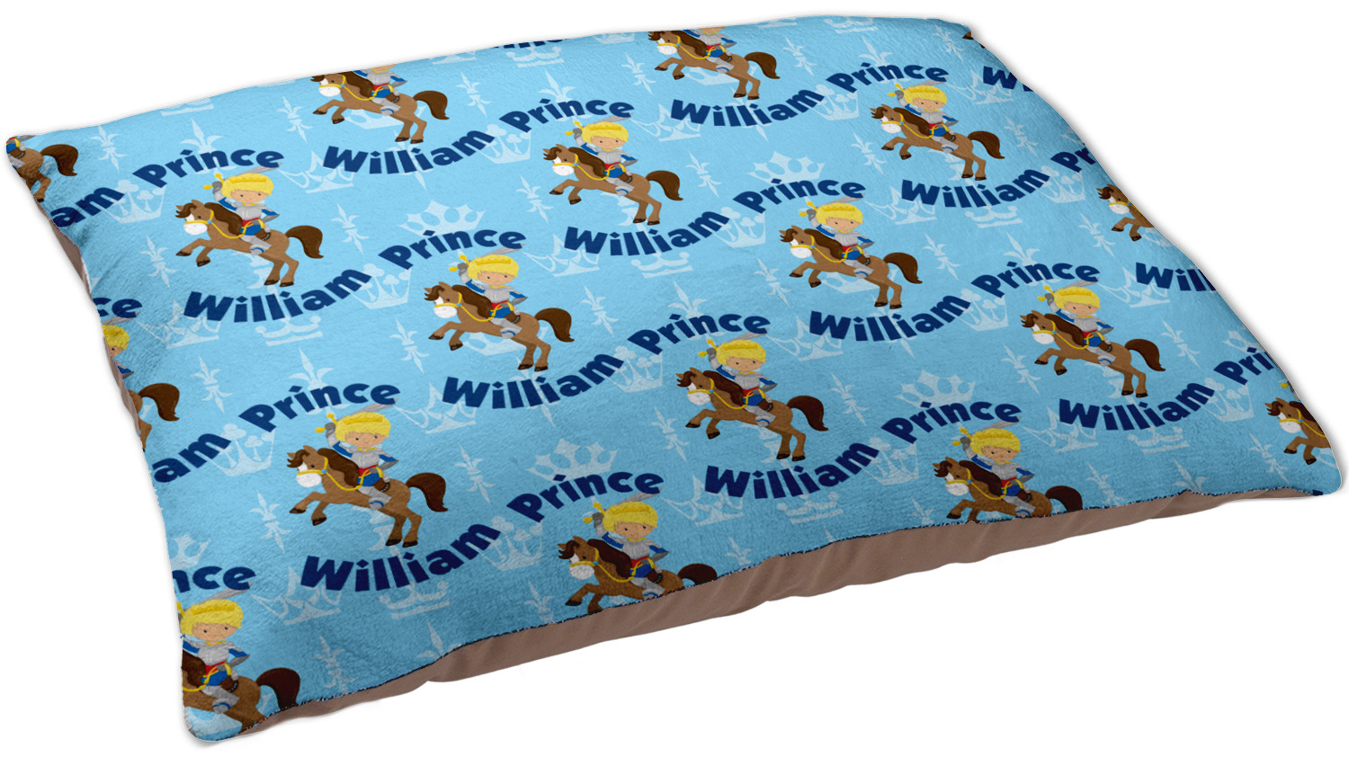 This is the perfect custom / personalized prince design for any young boy. We have created a layered pattern, where the first background is a simple tone on tone crowns pattern. We then layered it with our curved custom text and graphic, where we used "Prince" and "William" as the text and we used a graphic of a prince on horse.