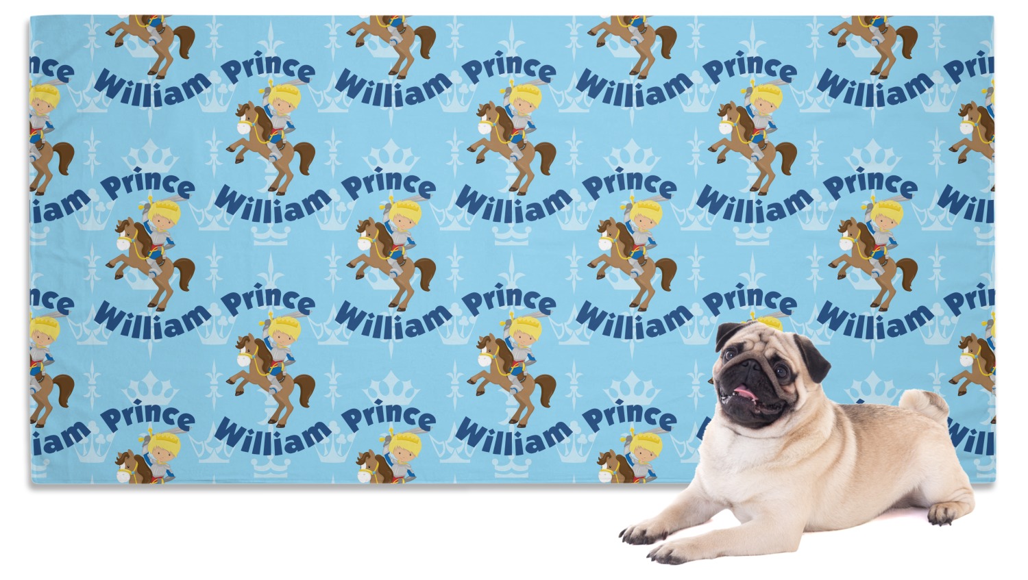 This is the perfect custom / personalized prince design for any young boy. We have created a layered pattern, where the first background is a simple tone on tone crowns pattern. We then layered it with our curved custom text and graphic, where we used "Prince" and "William" as the text and we used a graphic of a prince on horse.