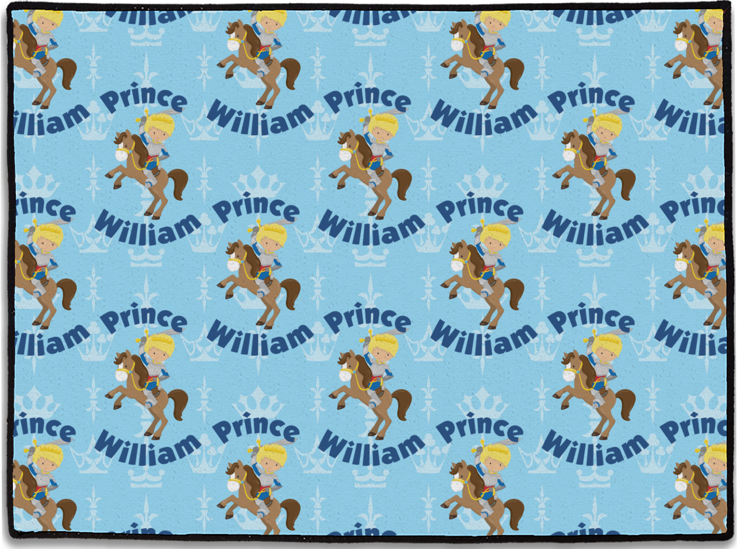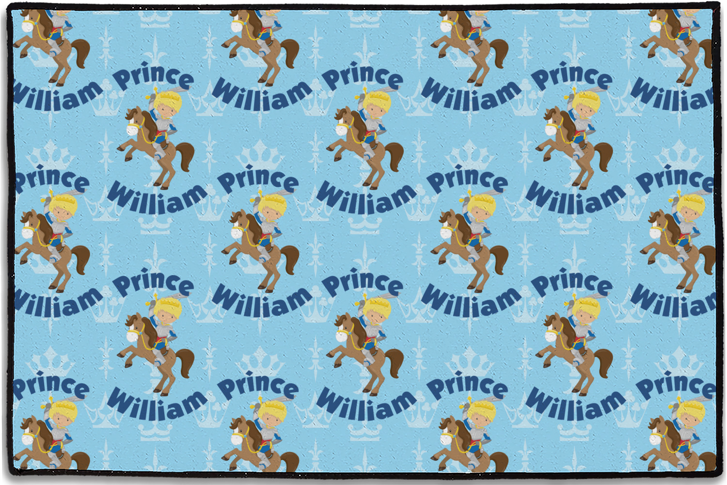 This is the perfect custom / personalized prince design for any young boy. We have created a layered pattern, where the first background is a simple tone on tone crowns pattern. We then layered it with our curved custom text and graphic, where we used "Prince" and "William" as the text and we used a graphic of a prince on horse.