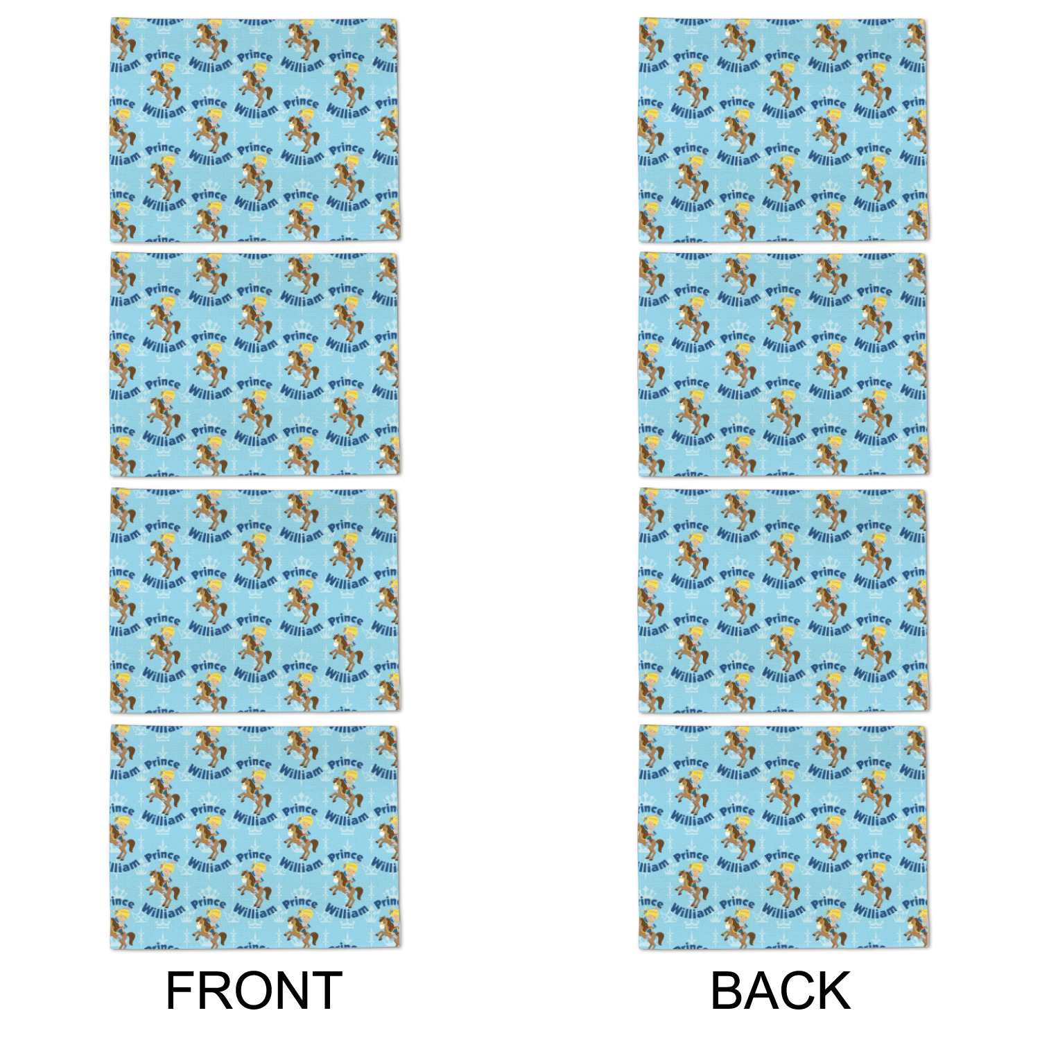 This is the perfect custom / personalized prince design for any young boy. We have created a layered pattern, where the first background is a simple tone on tone crowns pattern. We then layered it with our curved custom text and graphic, where we used "Prince" and "William" as the text and we used a graphic of a prince on horse.