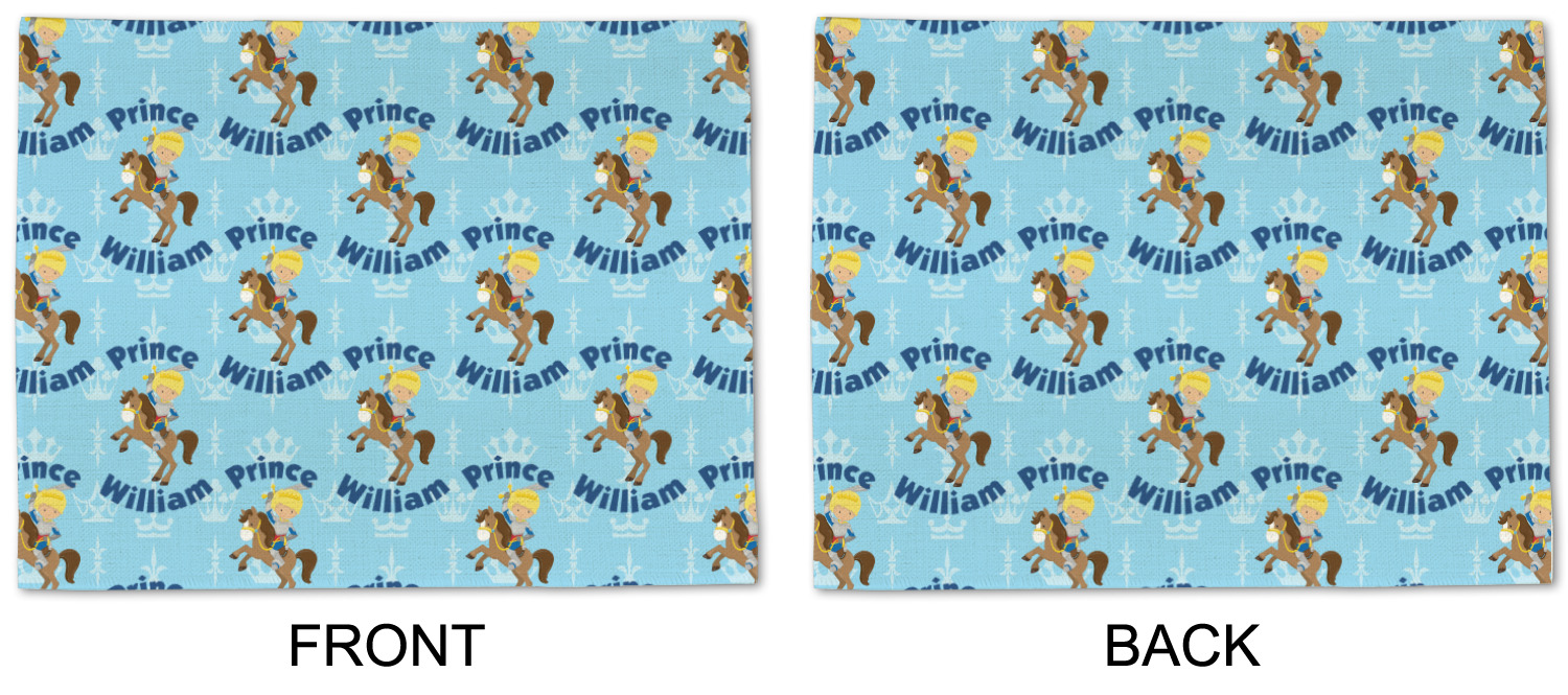 This is the perfect custom / personalized prince design for any young boy. We have created a layered pattern, where the first background is a simple tone on tone crowns pattern. We then layered it with our curved custom text and graphic, where we used "Prince" and "William" as the text and we used a graphic of a prince on horse.