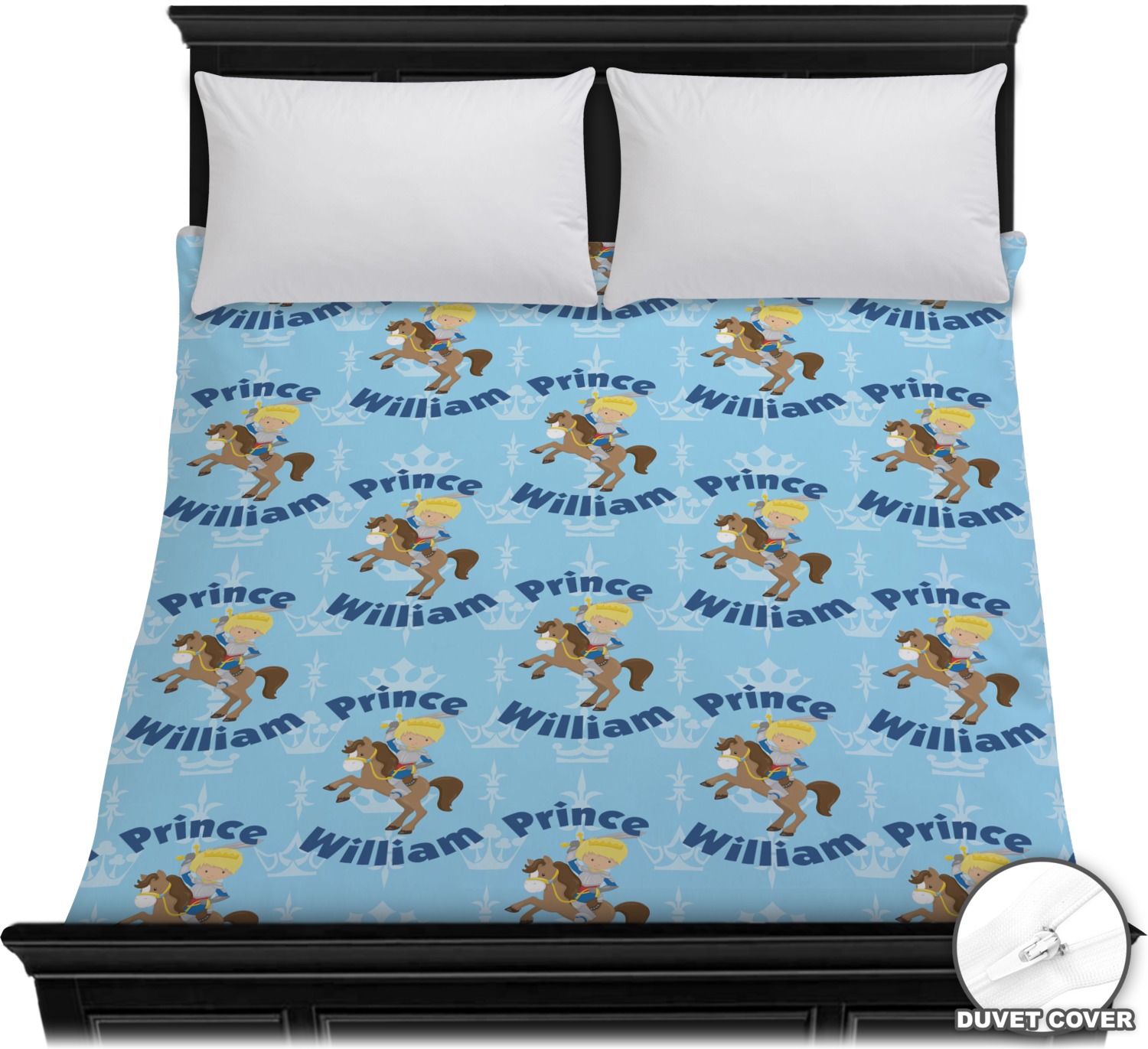 This is the perfect custom / personalized prince design for any young boy. We have created a layered pattern, where the first background is a simple tone on tone crowns pattern. We then layered it with our curved custom text and graphic, where we used "Prince" and "William" as the text and we used a graphic of a prince on horse.