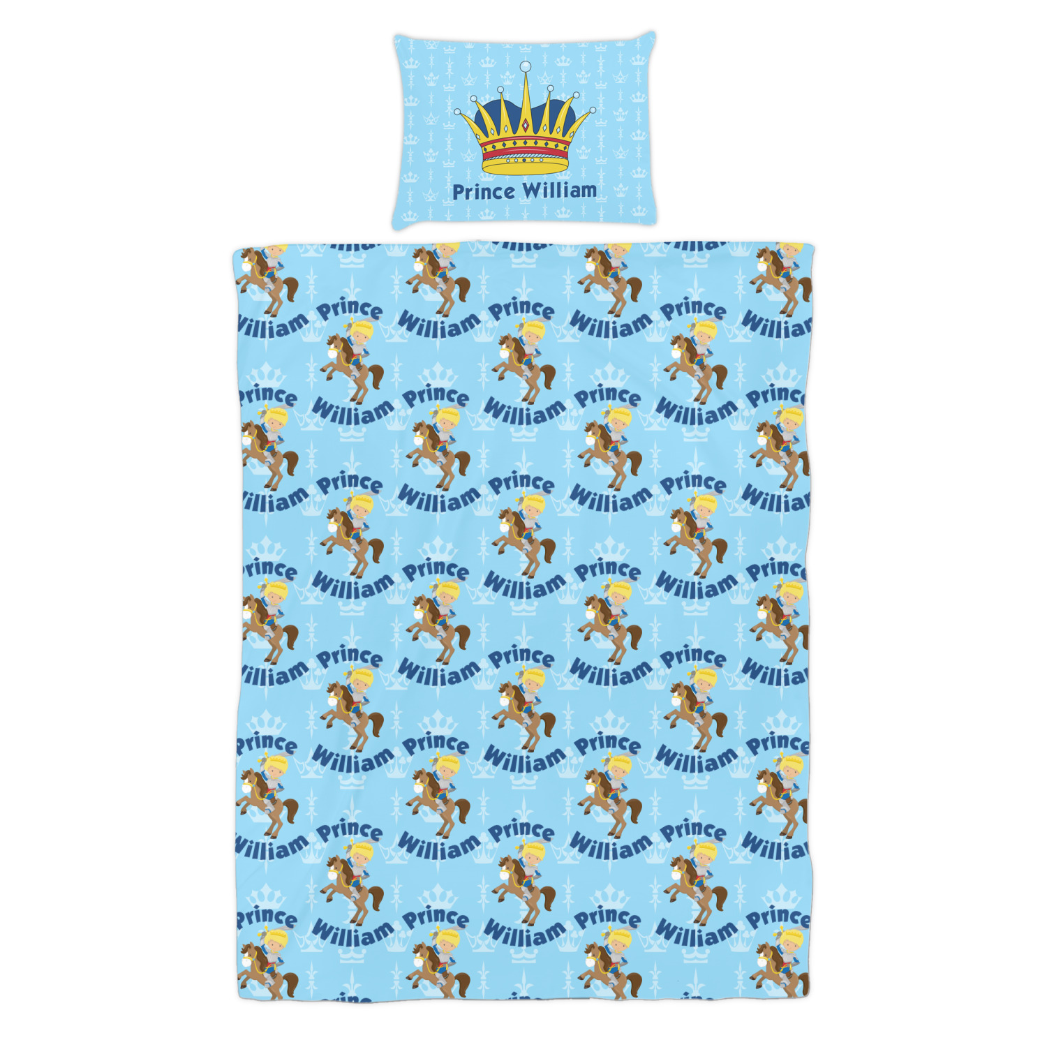 This is the perfect custom / personalized prince design for any young boy. We have created a layered pattern, where the first background is a simple tone on tone crowns pattern. We then layered it with our curved custom text and graphic, where we used "Prince" and "William" as the text and we used a graphic of a prince on horse.