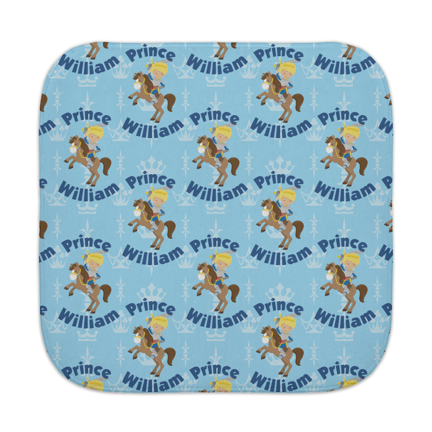 This is the perfect custom / personalized prince design for any young boy. We have created a layered pattern, where the first background is a simple tone on tone crowns pattern. We then layered it with our curved custom text and graphic, where we used "Prince" and "William" as the text and we used a graphic of a prince on horse.